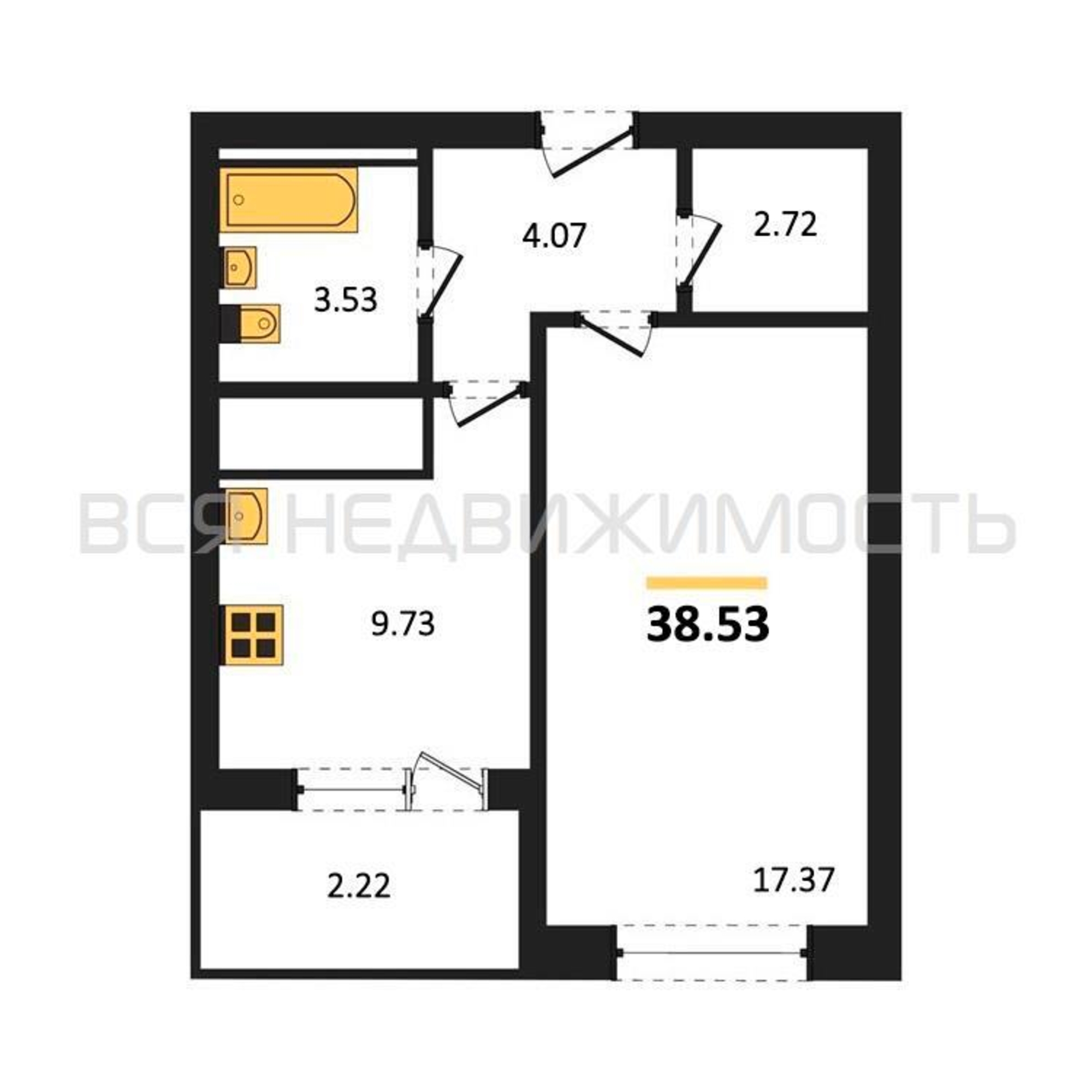 Строительная площадь38.53 м²