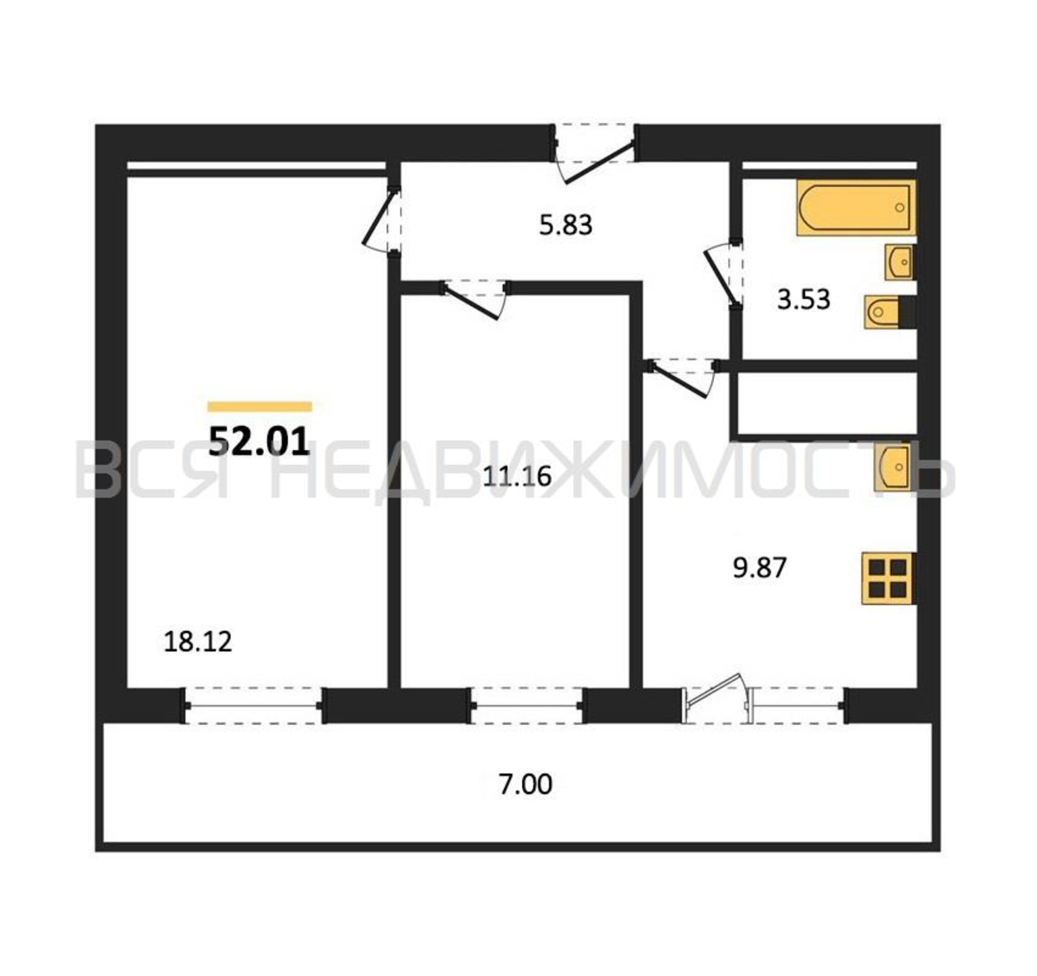 2-комнатная квартира, 55.81 м² 21/31 этаж ID объекта 100101063