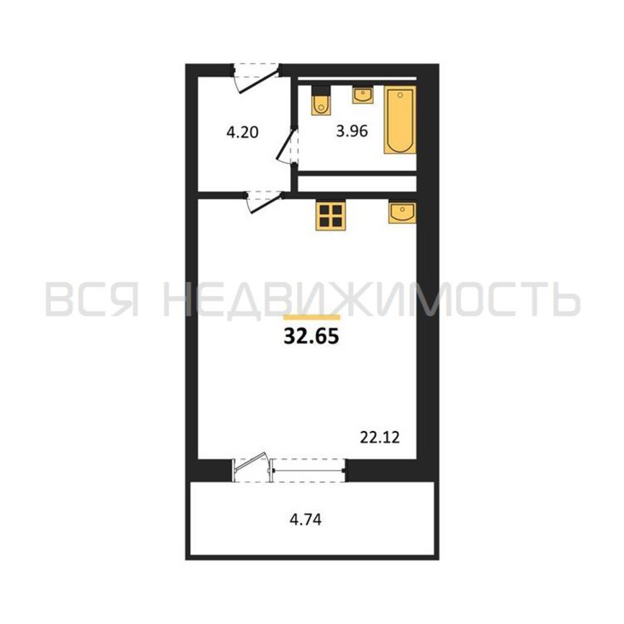 Квартиры-студии, 32.65 м² 6/25 этаж ID объекта 100101271