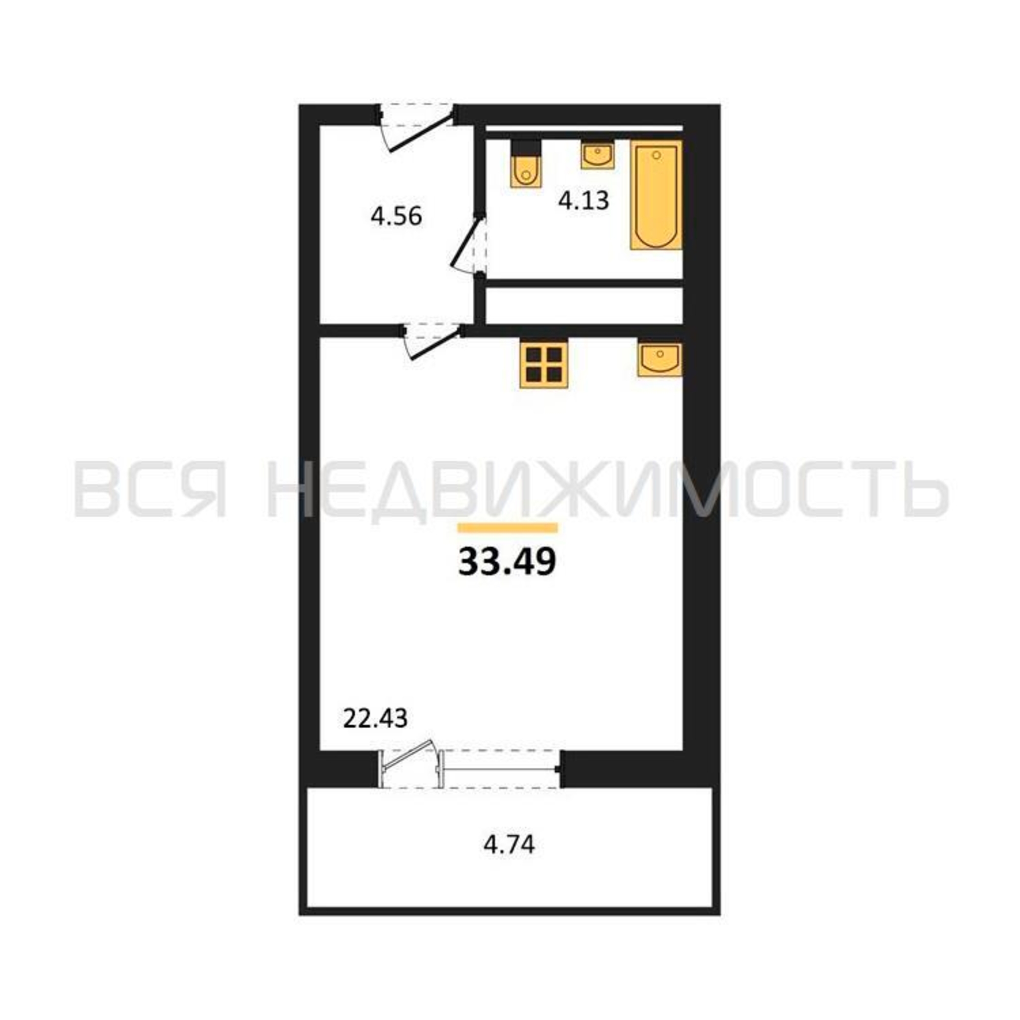 Квартиры-студии, 33.49 м² 24/25 этаж ID объекта 100101503