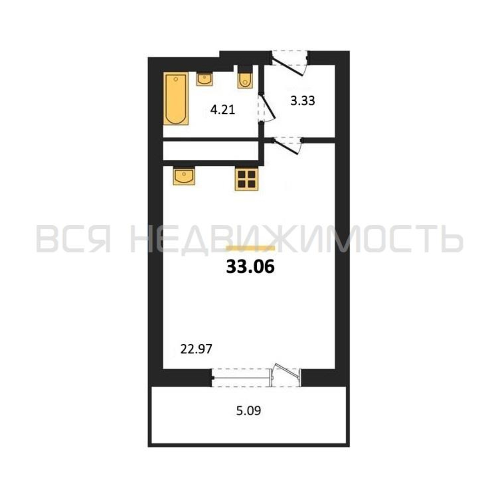 Квартиры-студии, 33.06 м² 25/25 этаж ID объекта 100101519