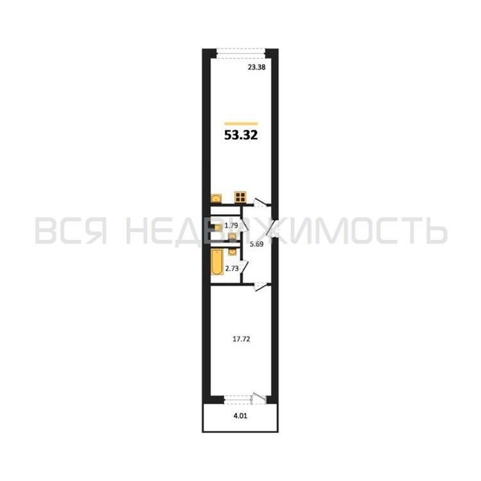 1-комнатная квартира, 53.32 м² 25/25 этаж ID объекта 100101520