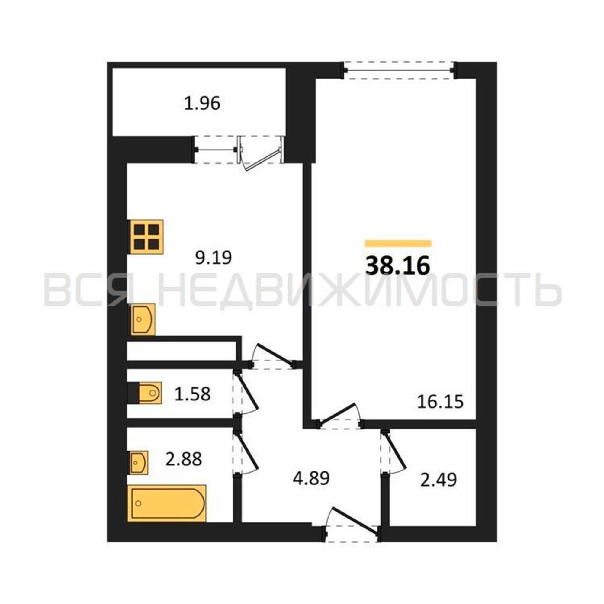 Строительная площадь38.16 м²