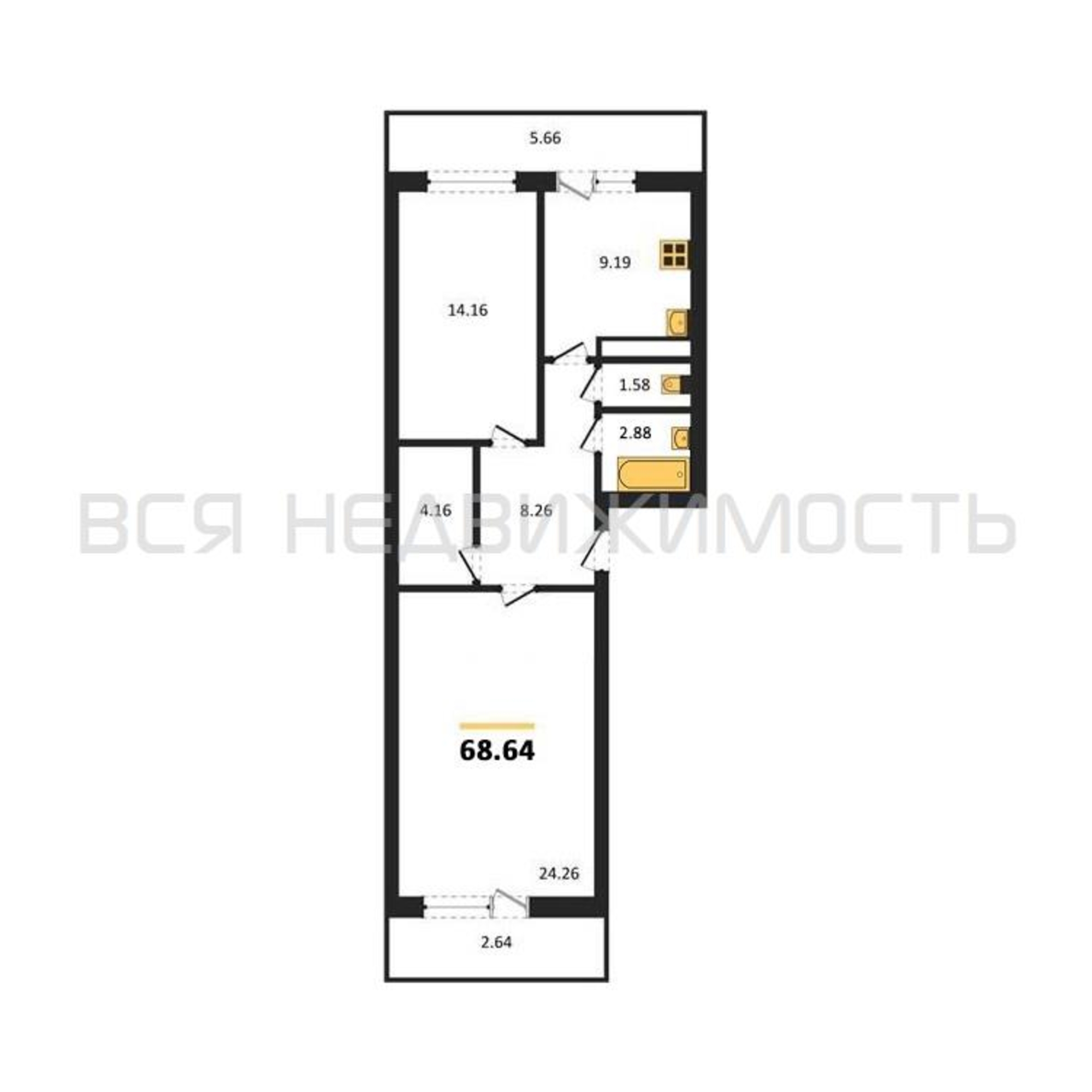 Строительная площадь68.64 м²