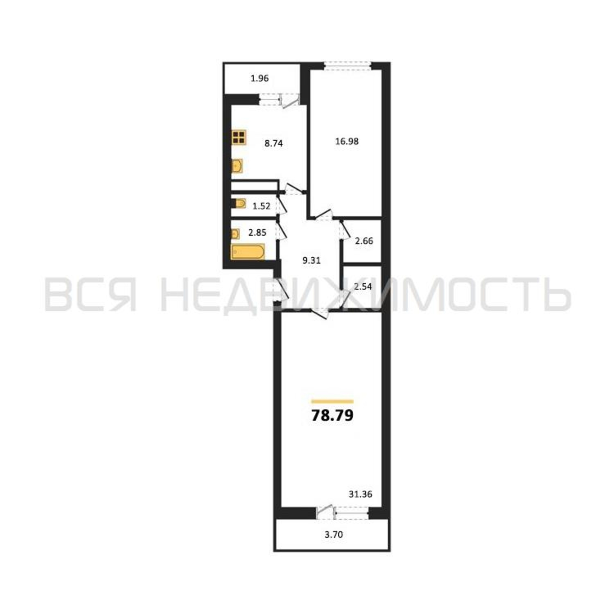 2-комнатная квартира, 78.79 м² 20/23 этаж ID объекта 100101719