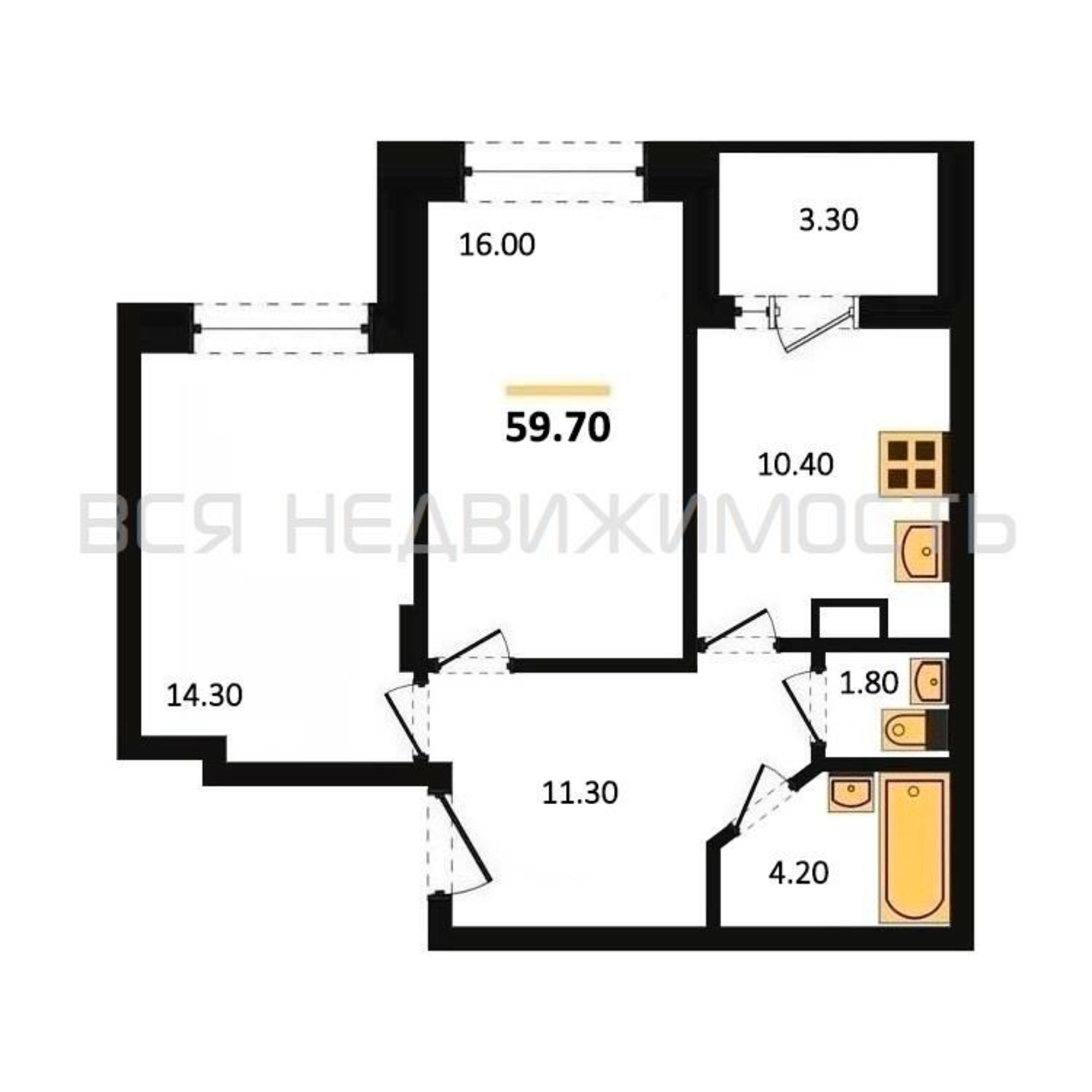 2-комнатная квартира, 59.70 м² 2/17 этаж ID объекта 100102137