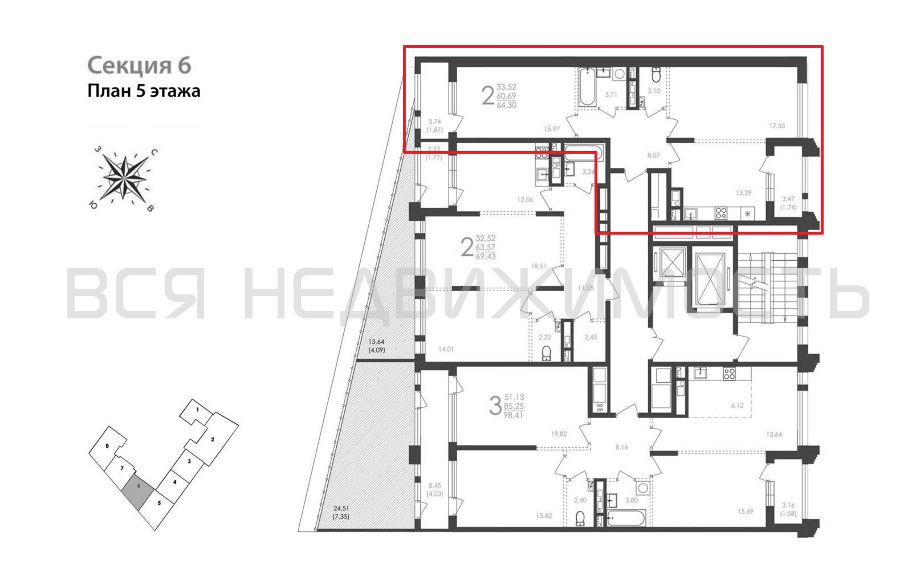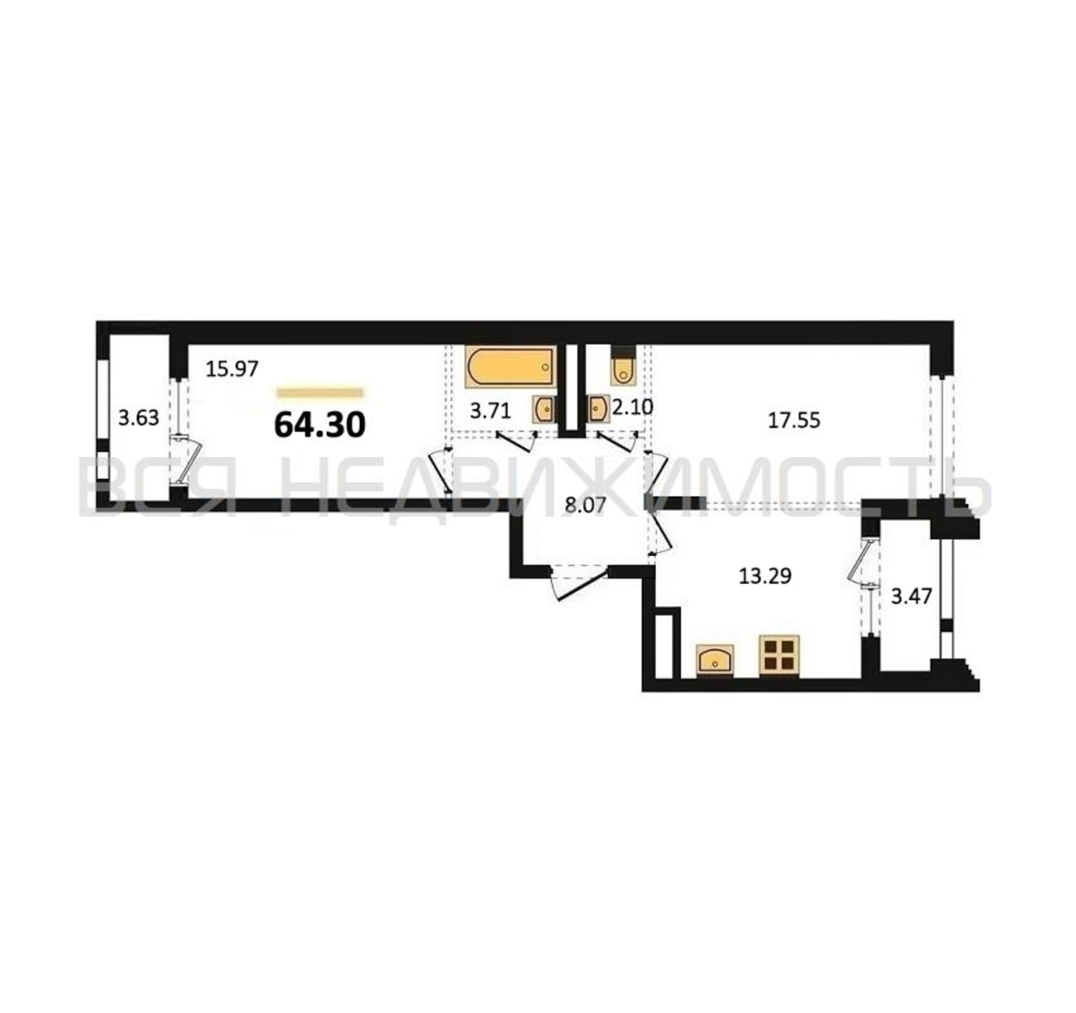 2-комнатная квартира, 64.30 м² 5/8 этаж ID объекта 100102139