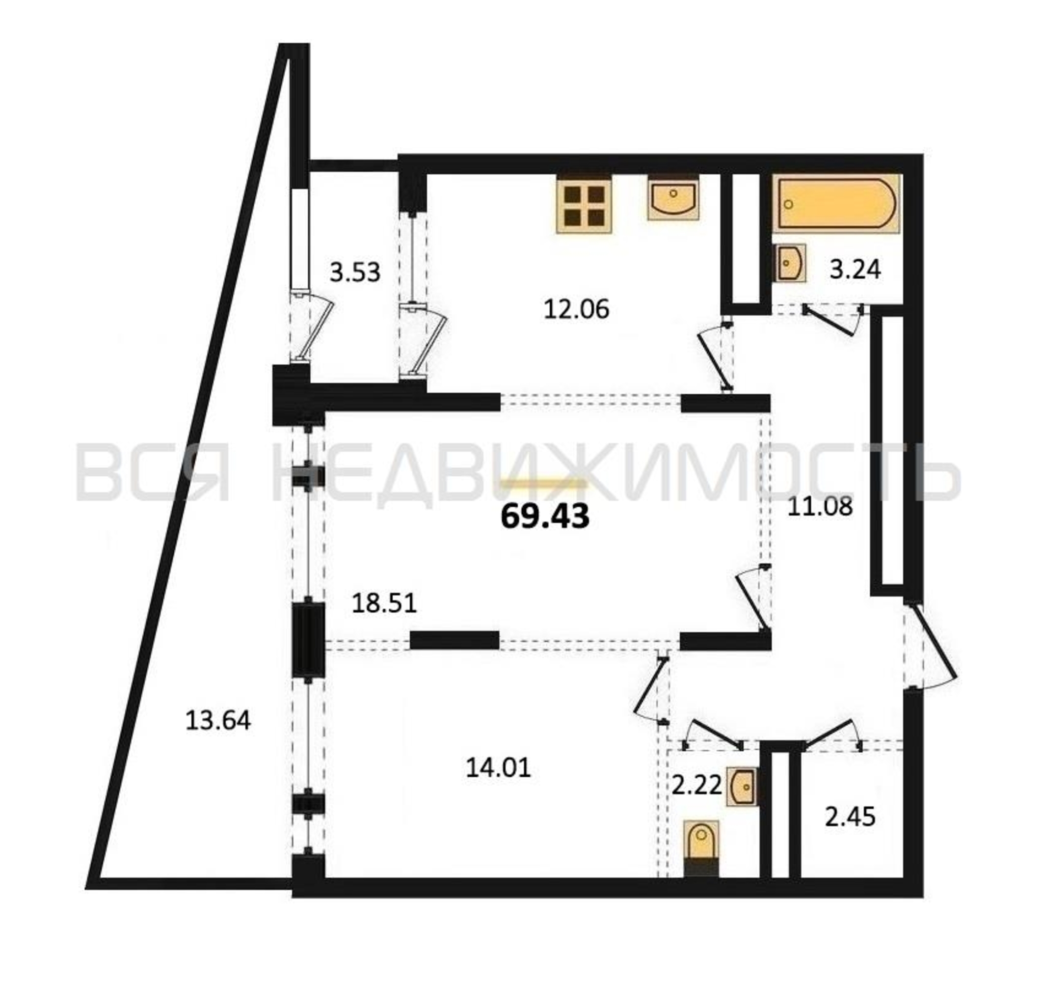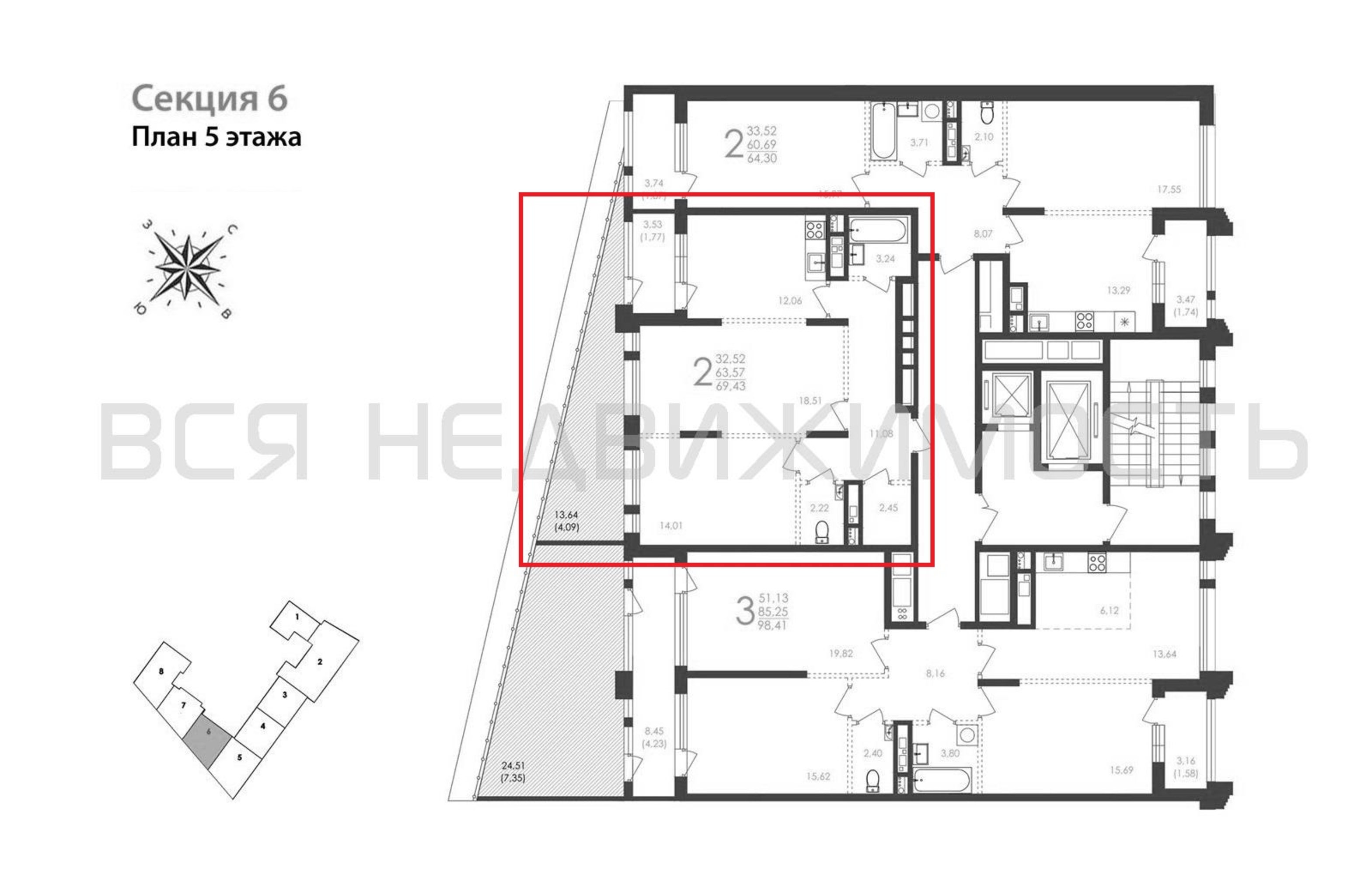 2-комнатная квартира, 69.43 м² 5/8 этаж ID объекта 100102140