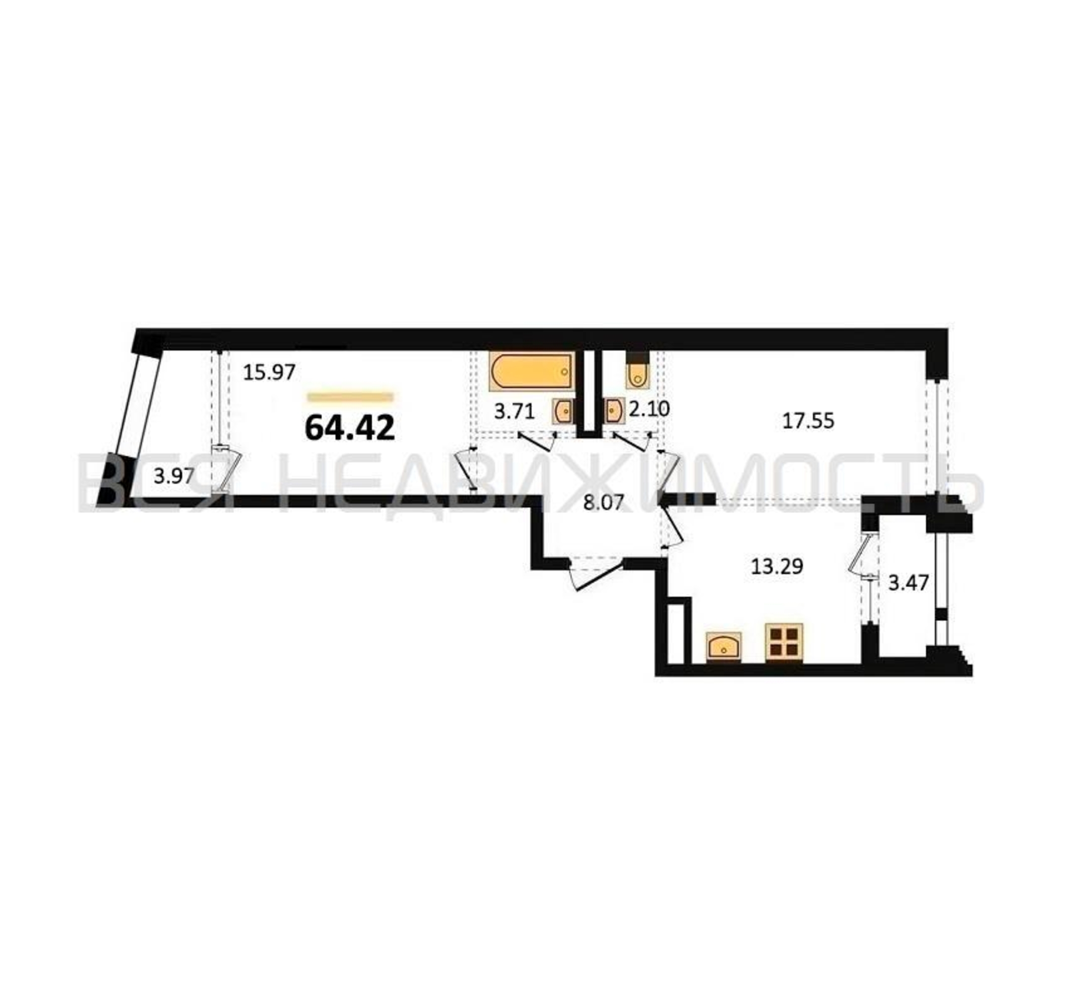 Строительная площадь64.42 м²
