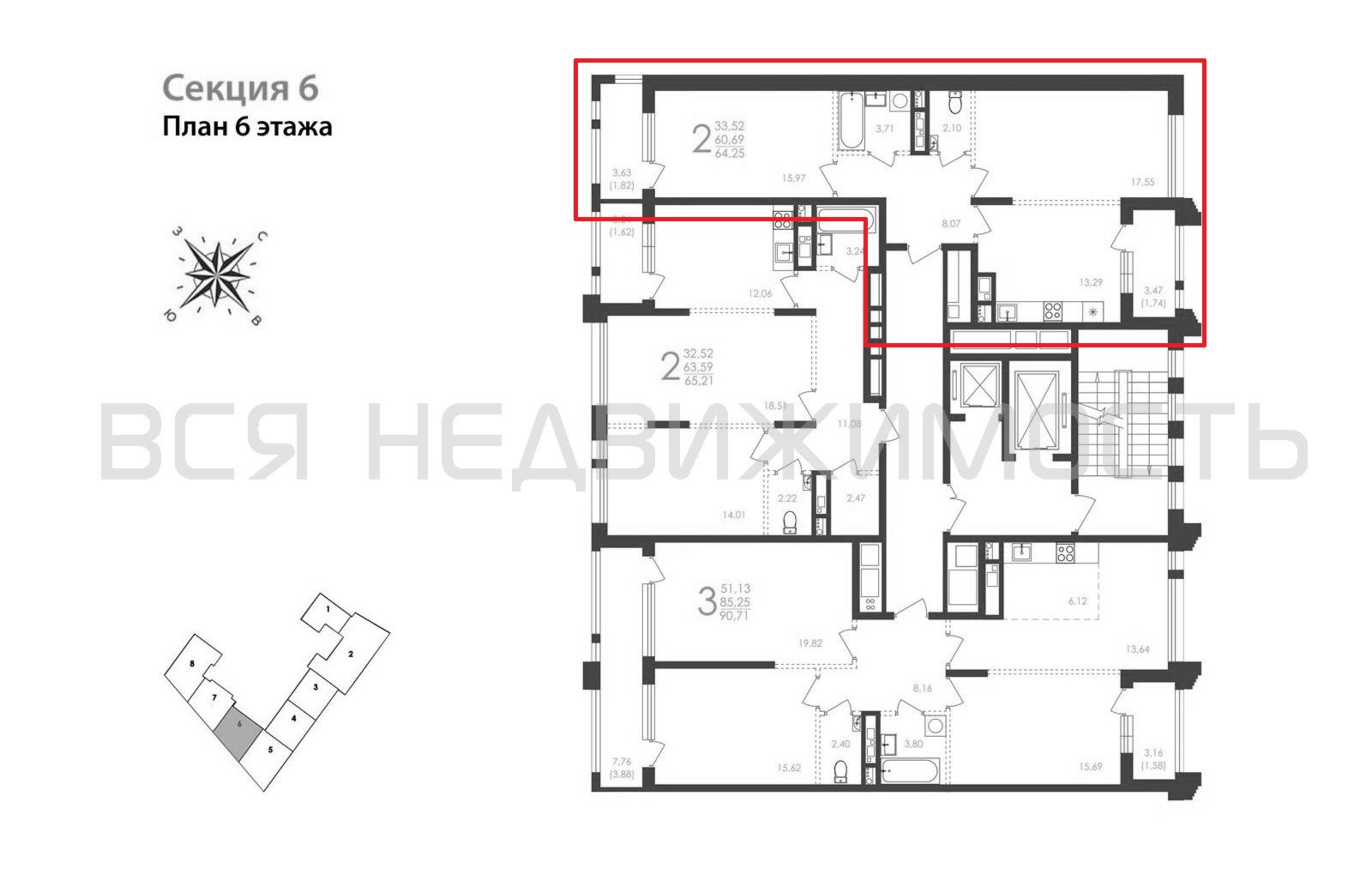 2-комнатная квартира, 64.25 м² 6/8 этаж ID объекта 100102150