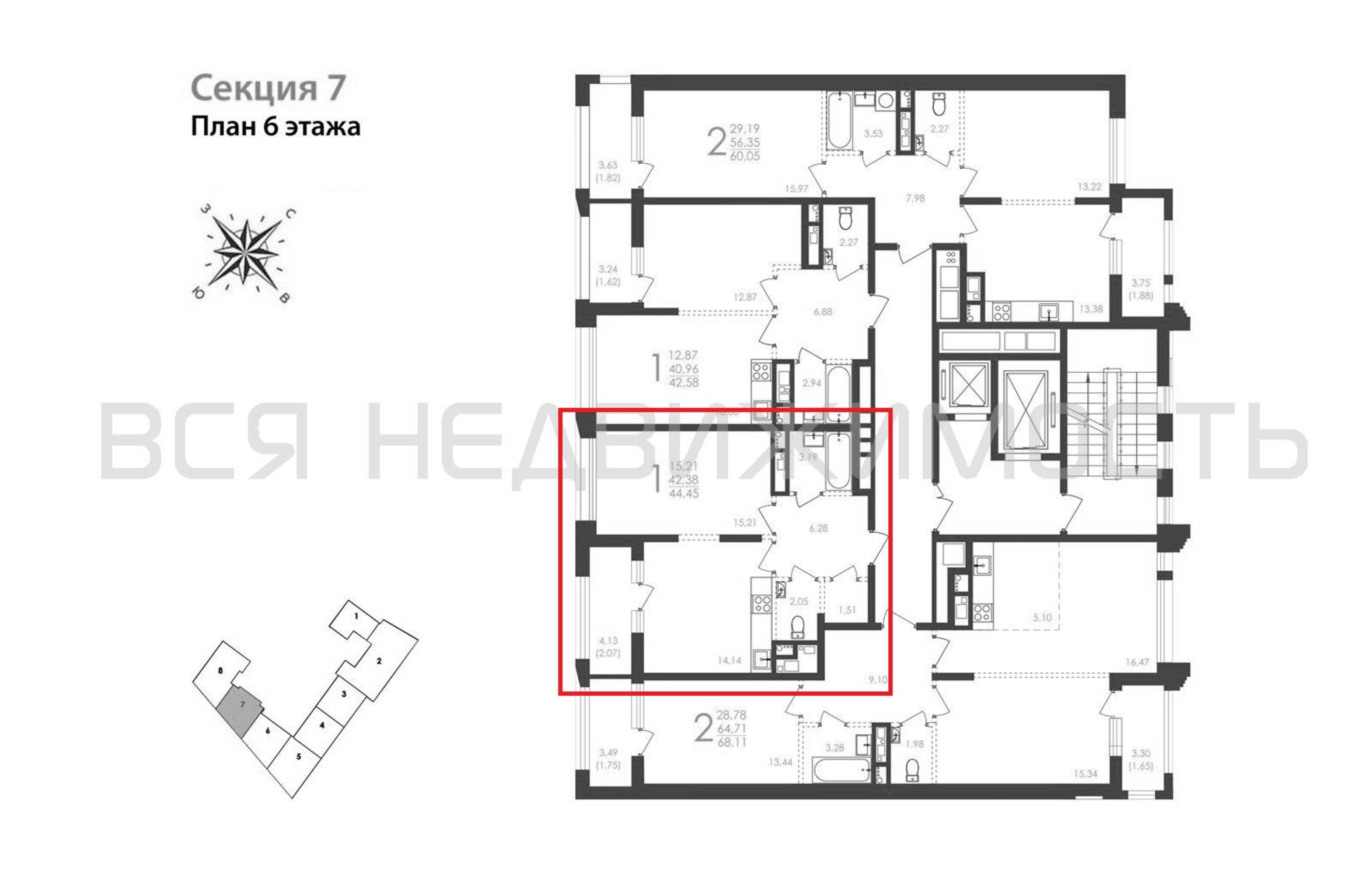 1-комнатная квартира, 44.45 м² 6/14 этаж ID объекта 100102153