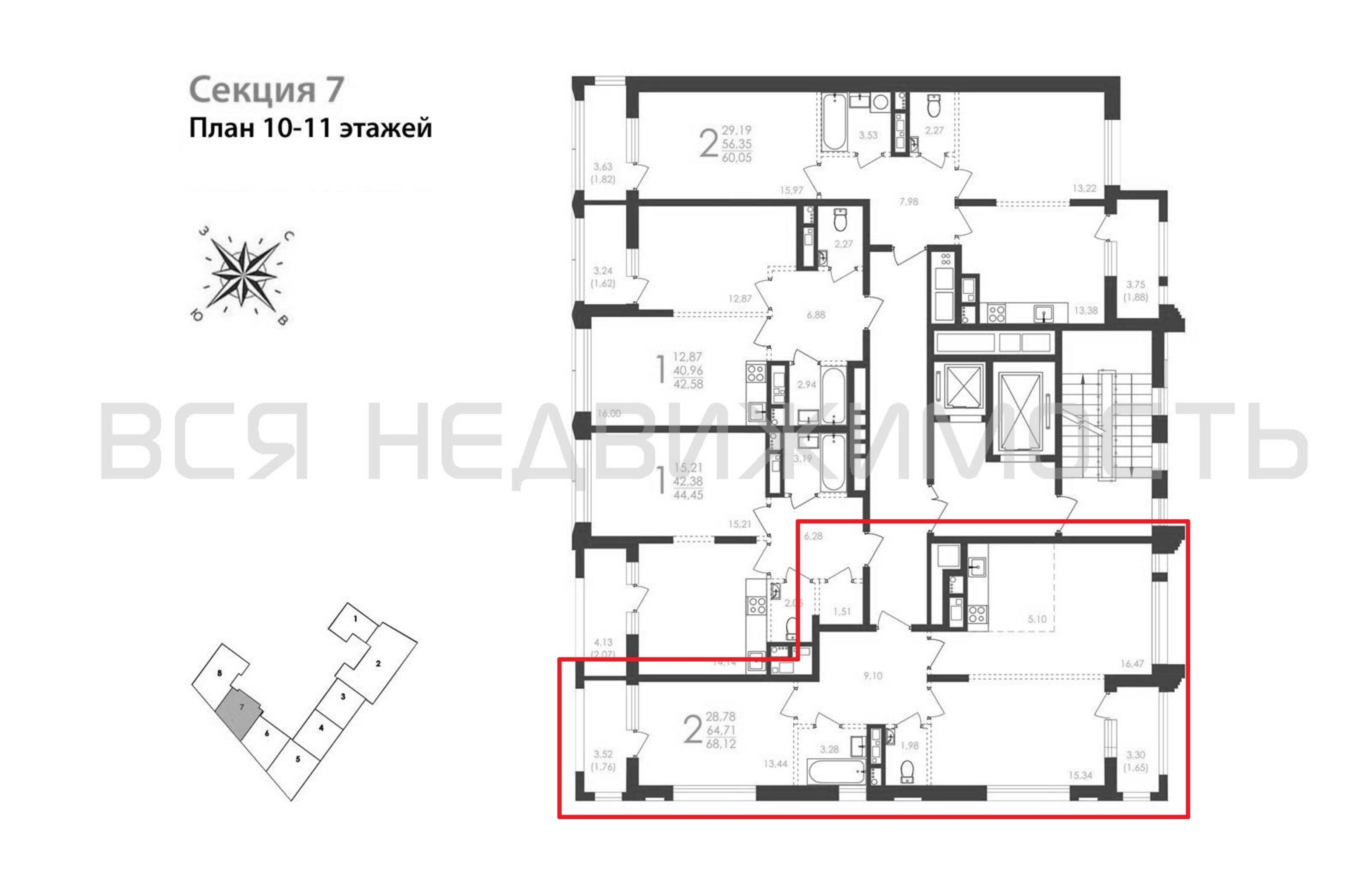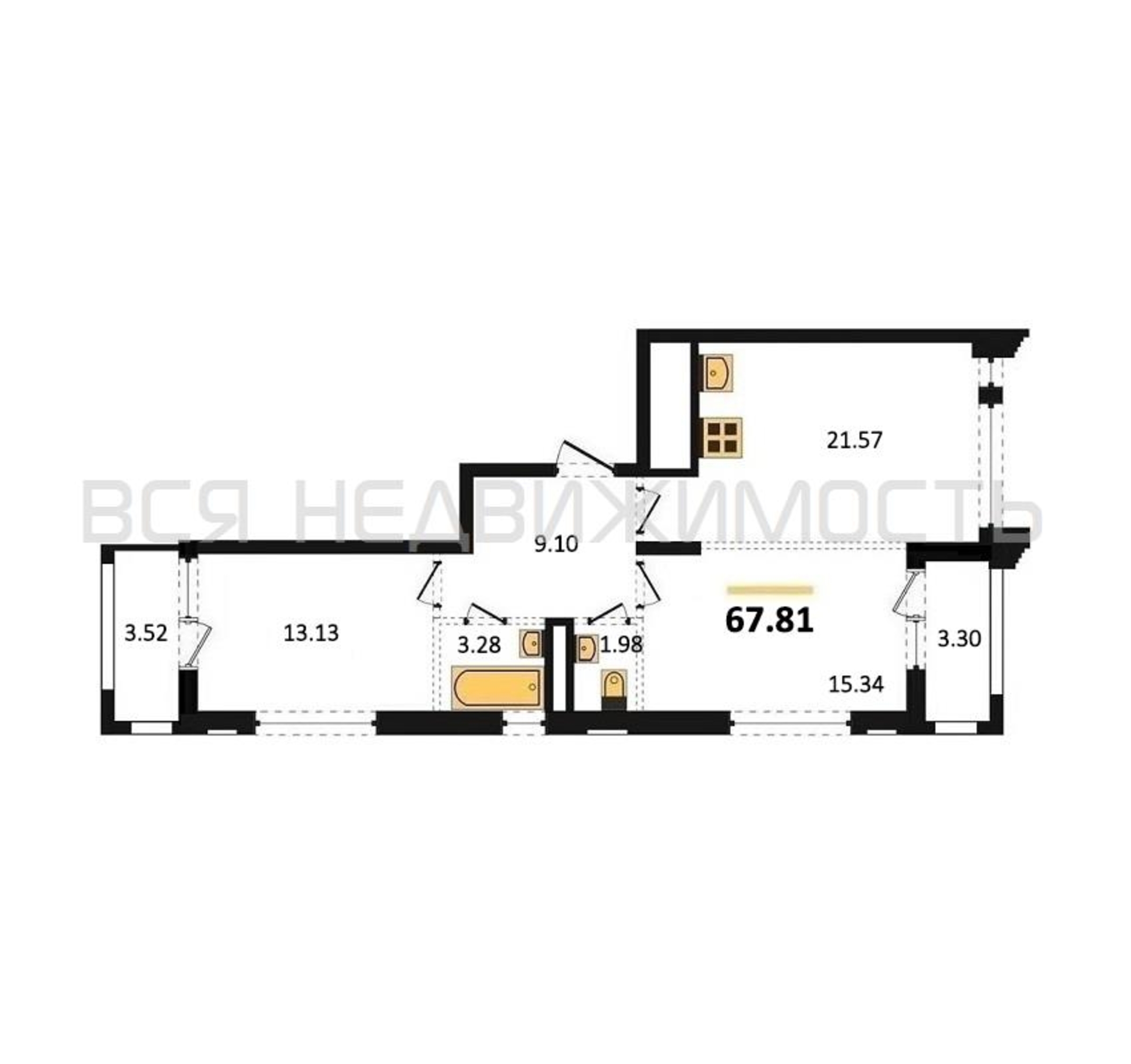 2-комнатная квартира, 67.81 м² 10/14 этаж ID объекта 100102166