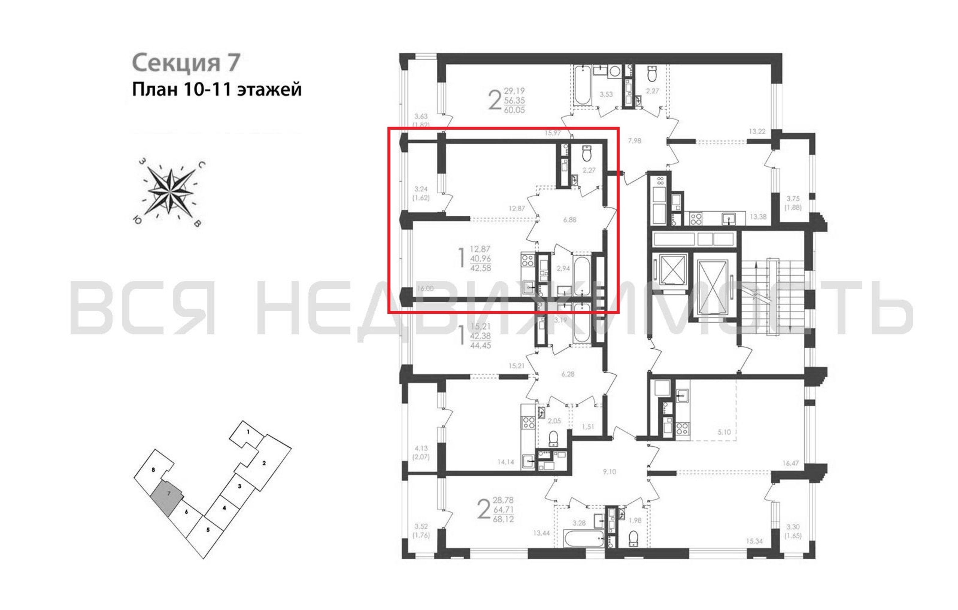 1-комнатная квартира, 42.58 м² 10/14 этаж ID объекта 100102168