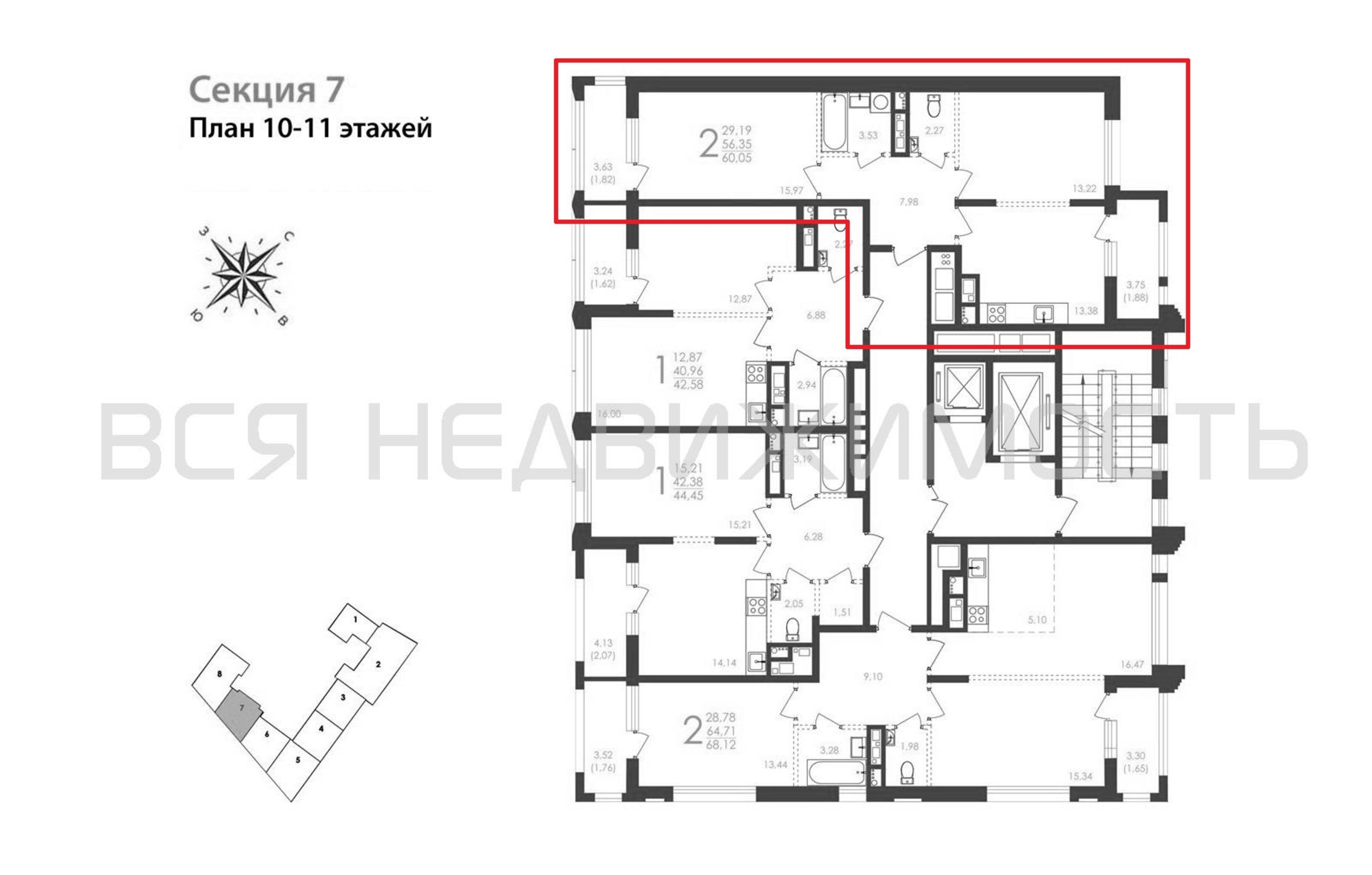 2-комнатная квартира, 60.05 м² 10/14 этаж ID объекта 100102170