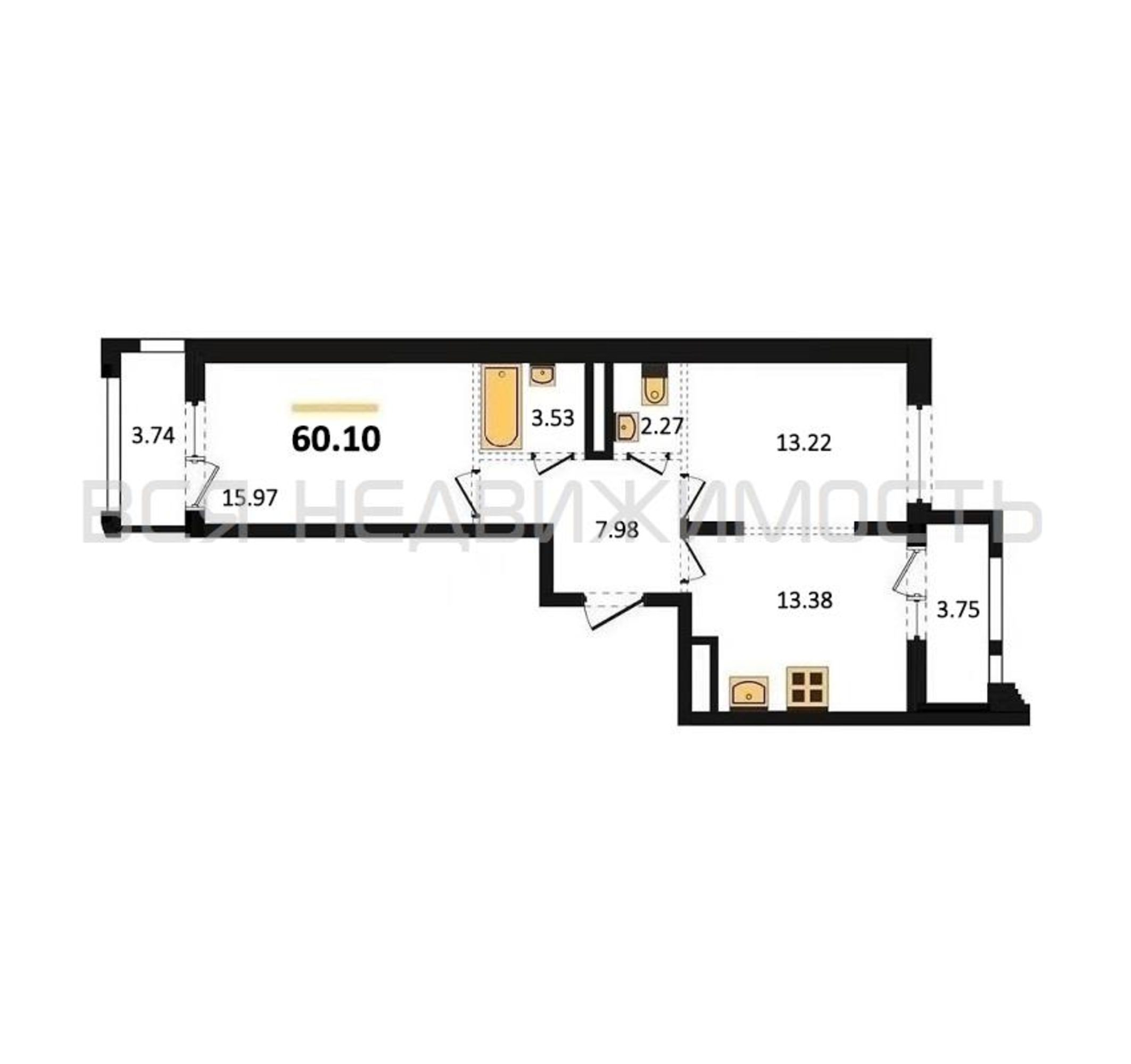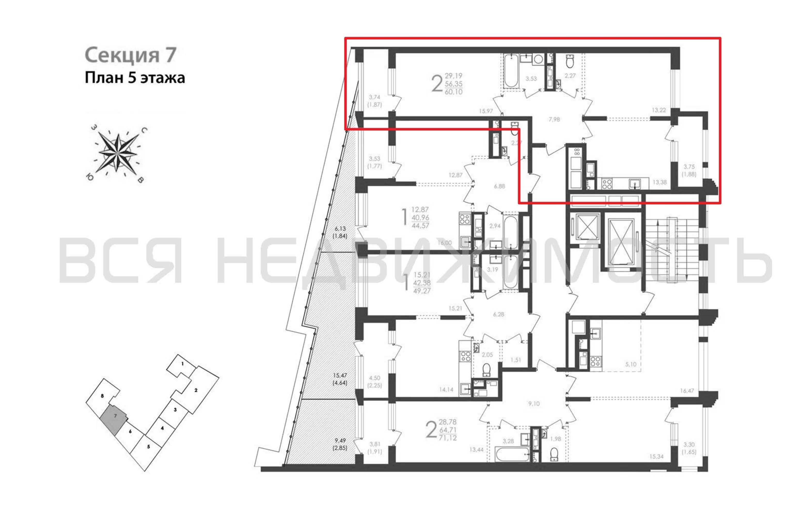 2-комнатная квартира, 60.10 м² 5/14 этаж ID объекта 100102173