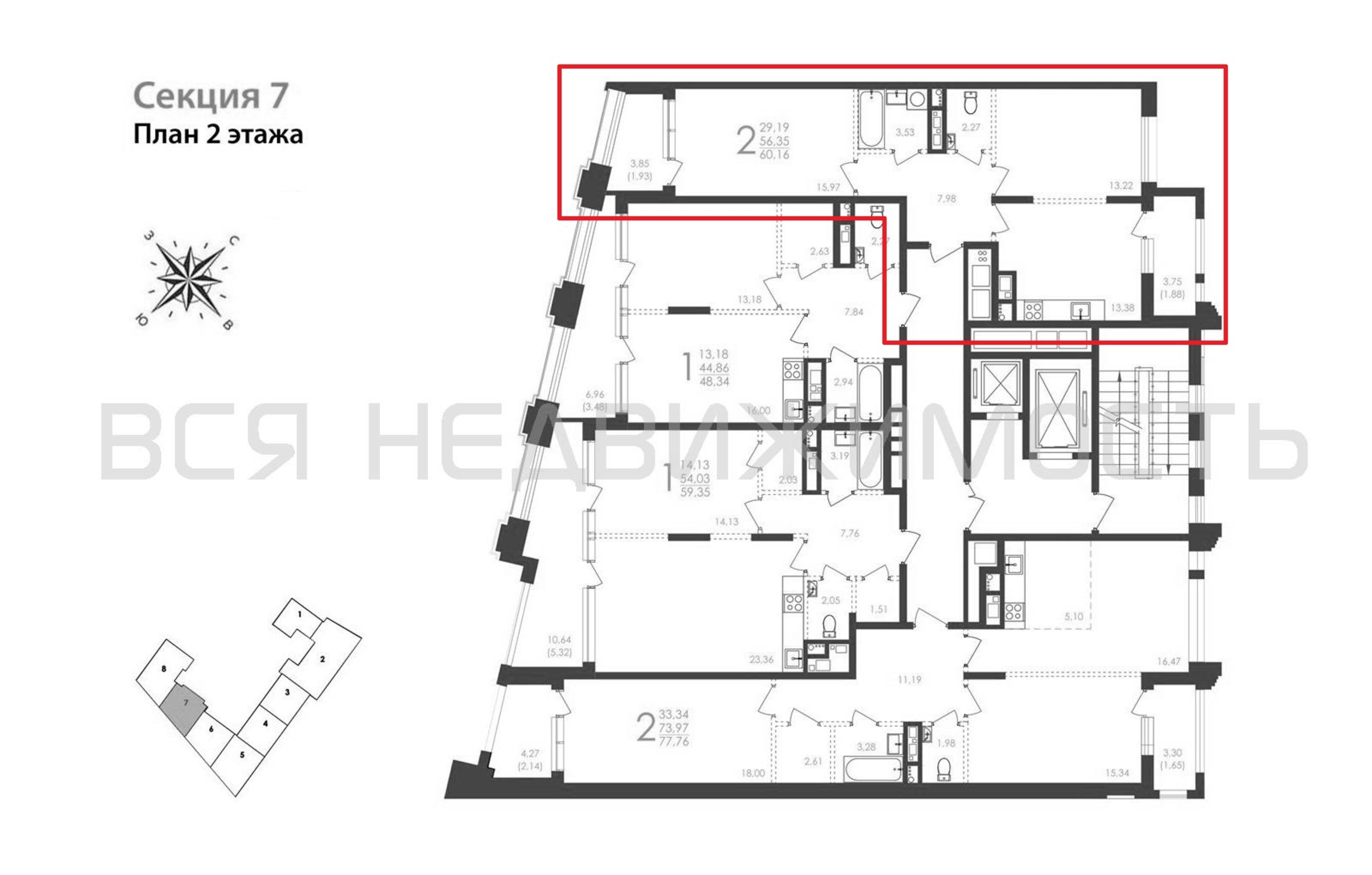 2-комнатная квартира, 60.16 м² 2/14 этаж ID объекта 100102176