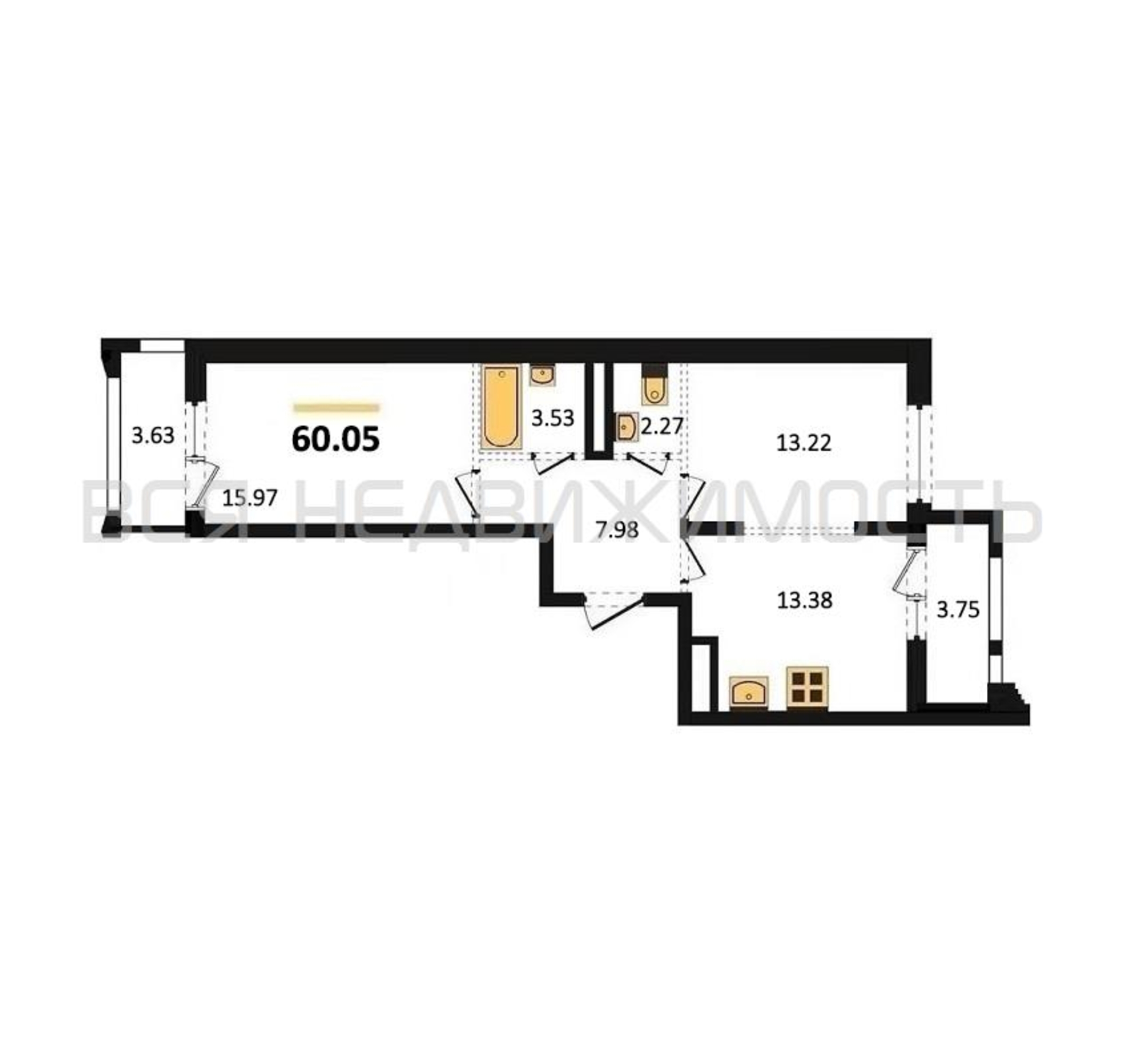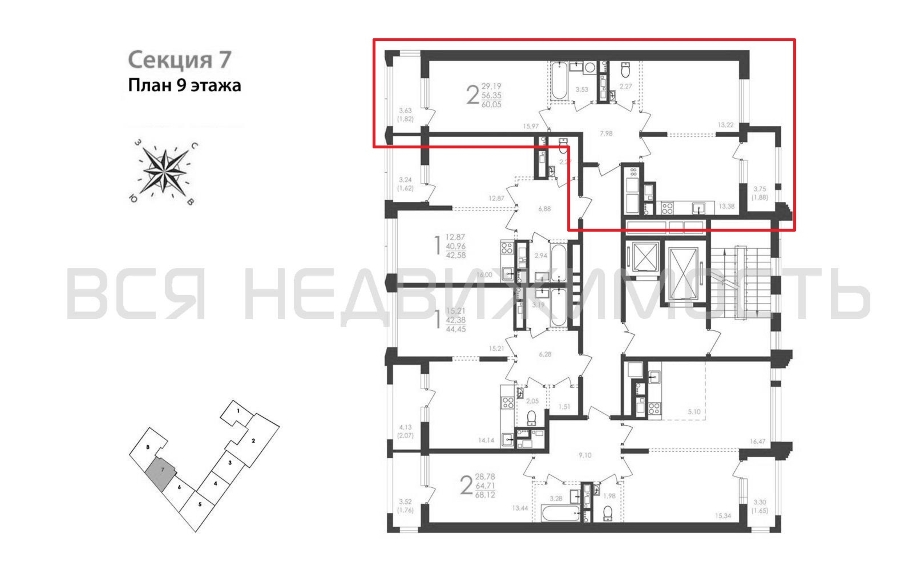 2-комнатная квартира, 60.05 м² 9/14 этаж ID объекта 100102179
