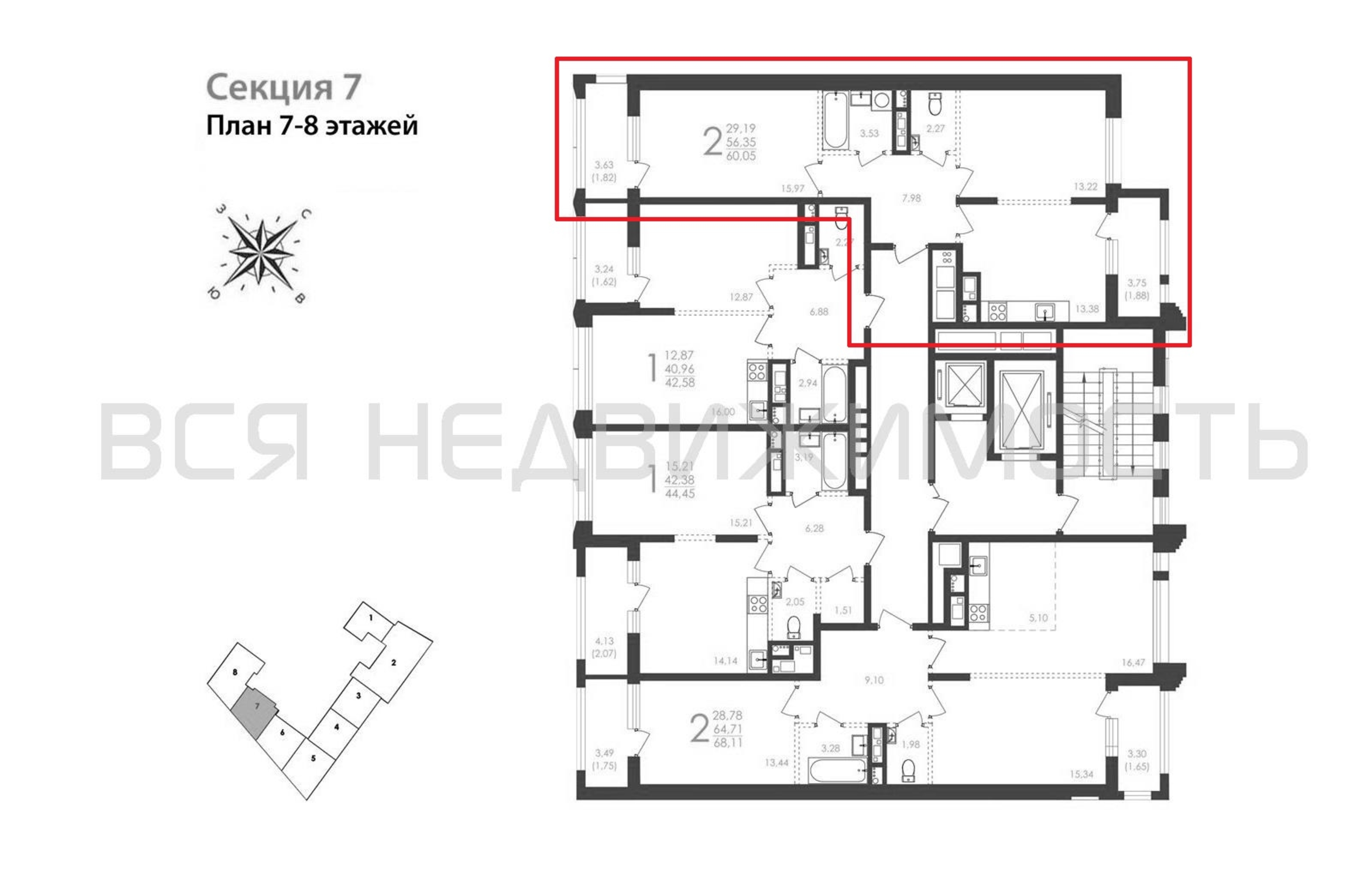 2-комнатная квартира, 60.05 м² 7/14 этаж ID объекта 100102186