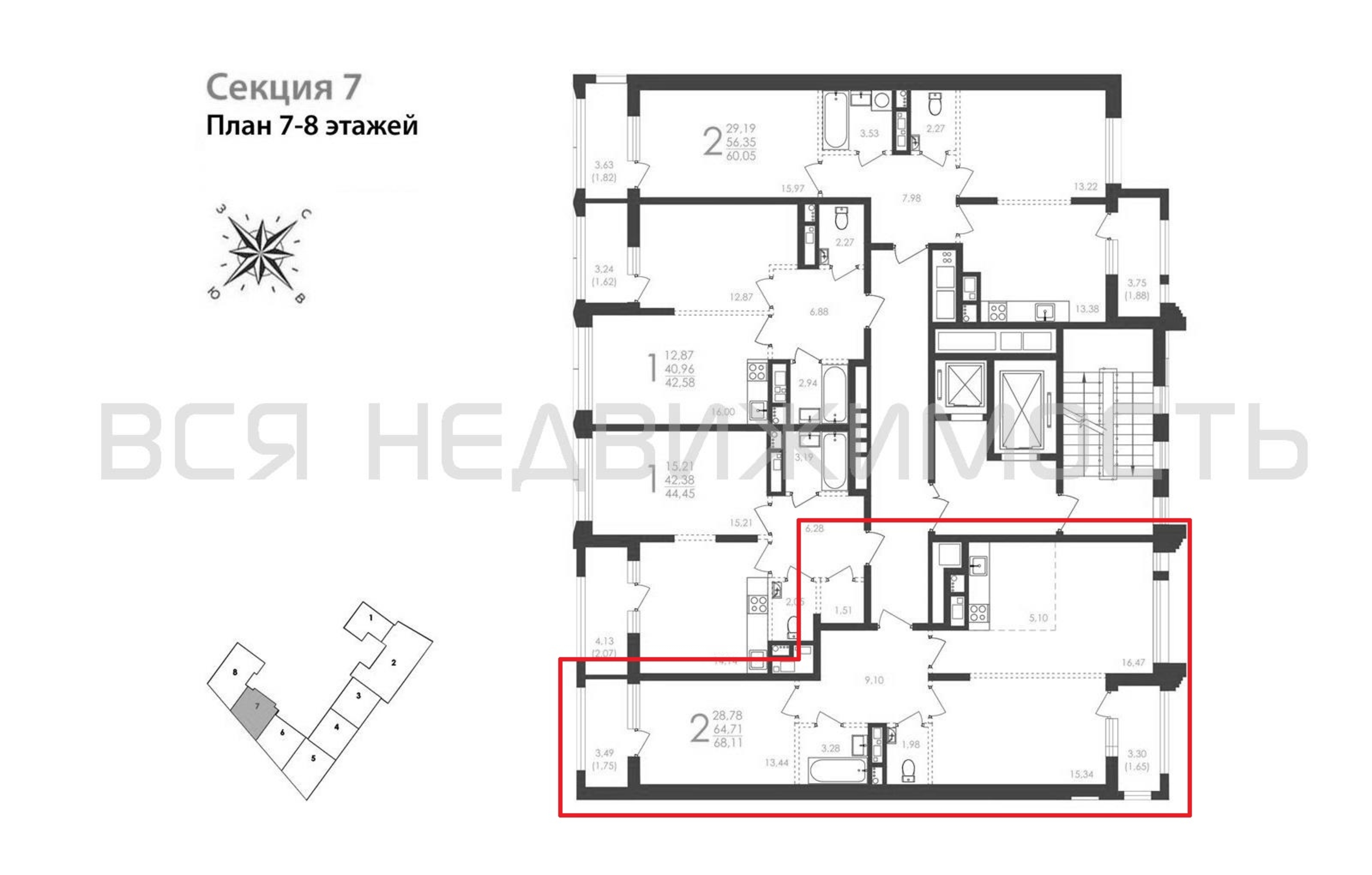 2-комнатная квартира, 67.80 м² 8/14 этаж ID объекта 100102189