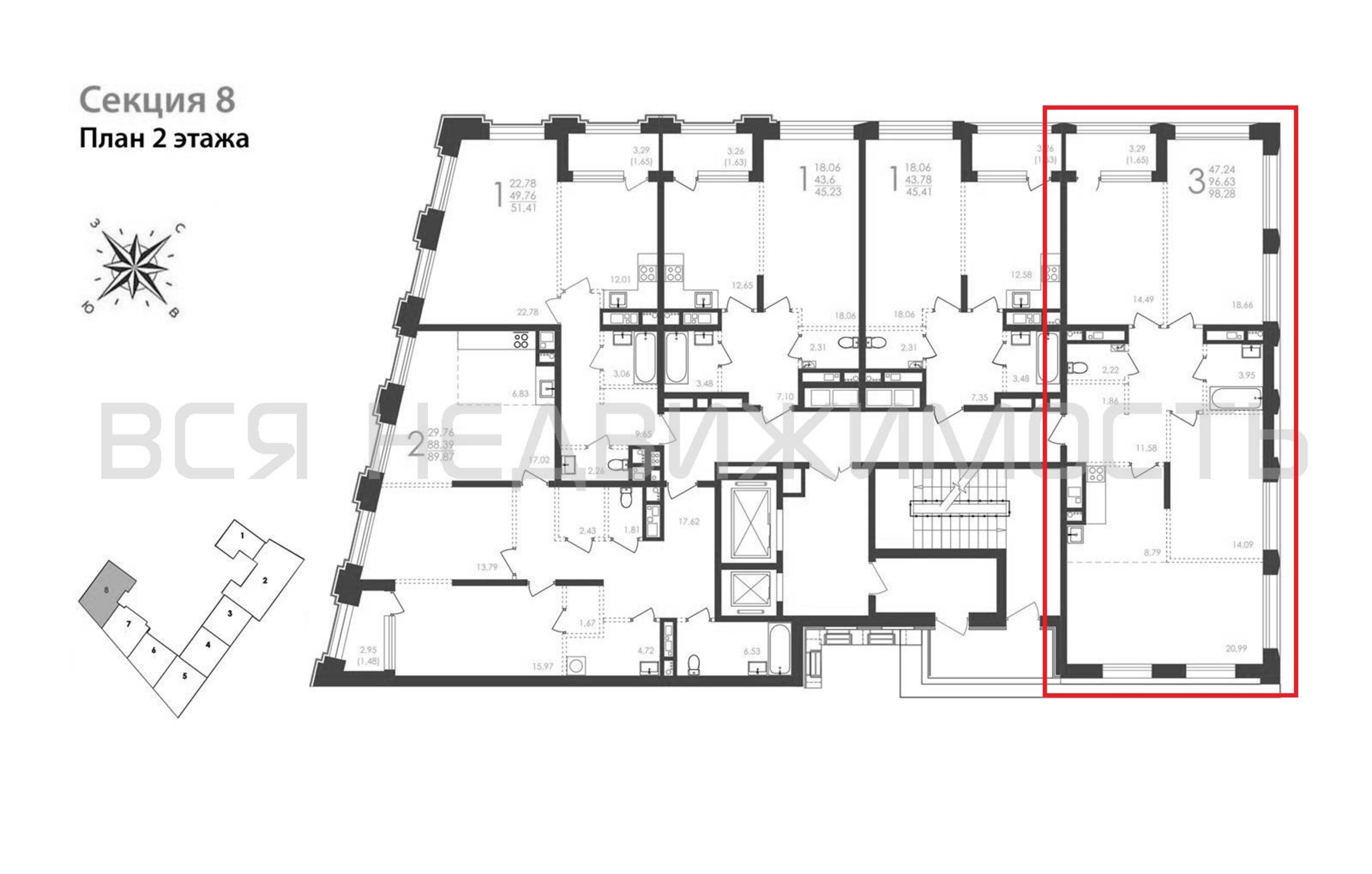 3-комнатная квартира, 98.28 м² 2/17 этаж ID объекта 100102190