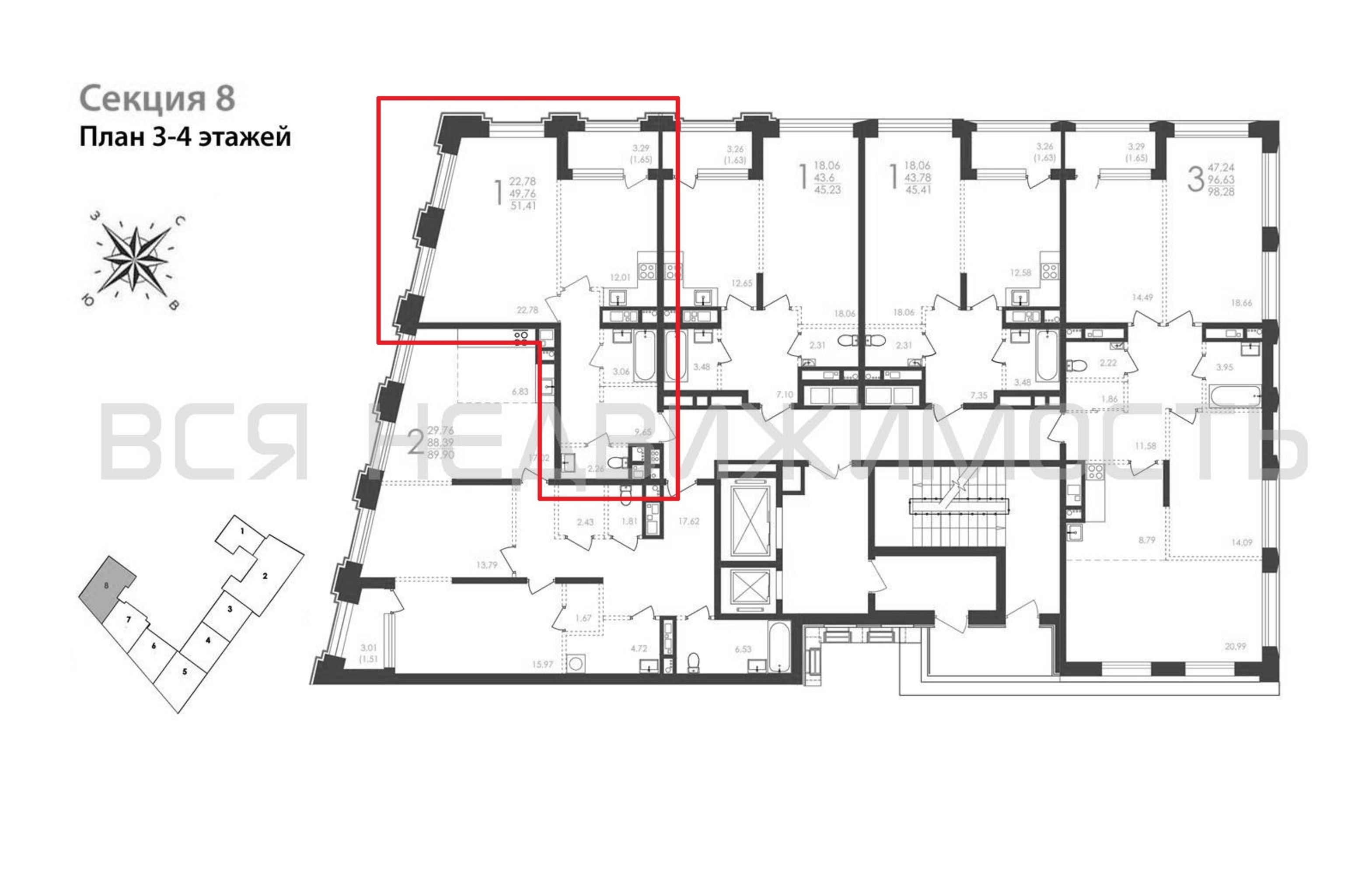 1-комнатная квартира, 51.41 м² 4/17 этаж ID объекта 100102196