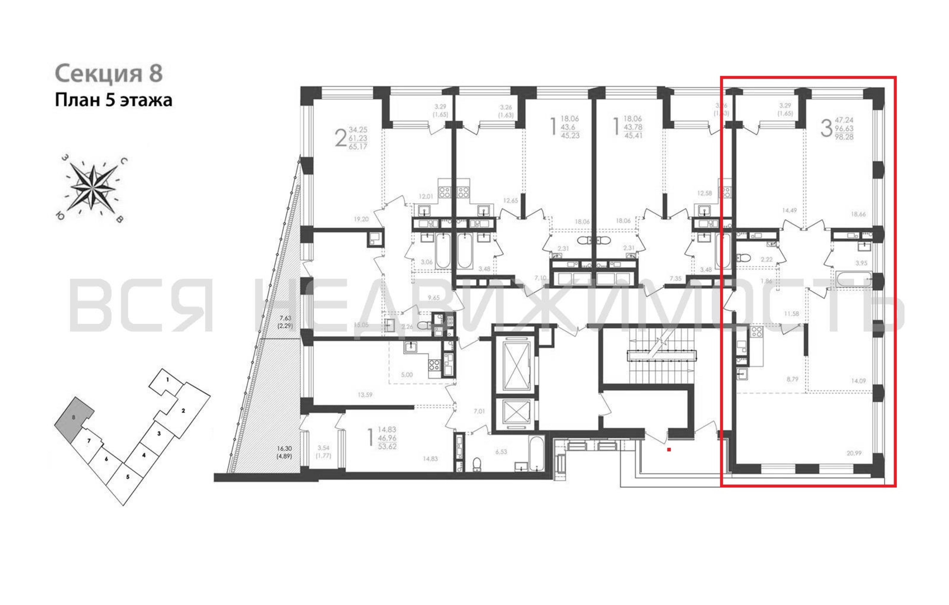 3-комнатная квартира, 98.28 м² 5/17 этаж ID объекта 100102207