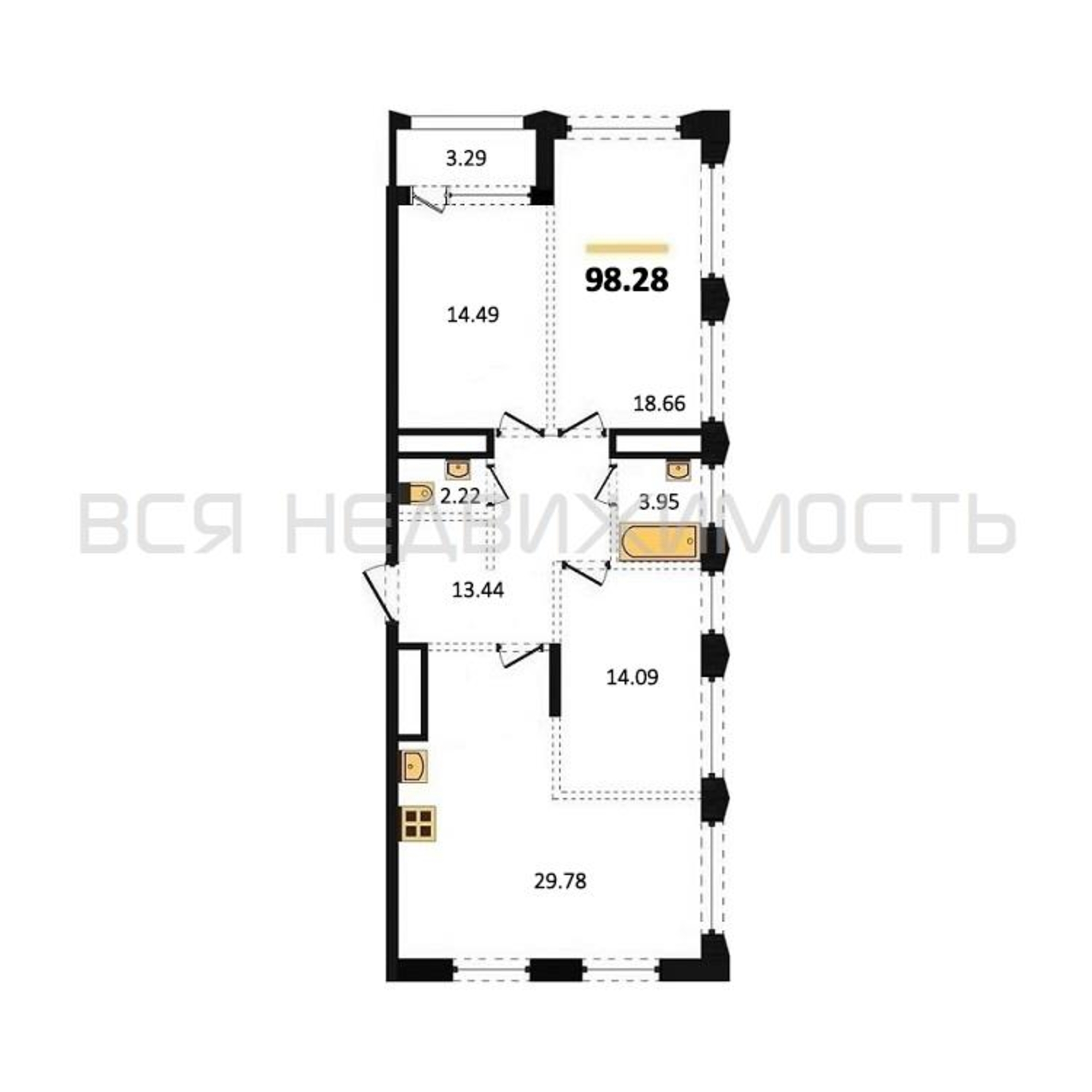 3-комнатная квартира, 98.28 м² 6/17 этаж ID объекта 100102228
