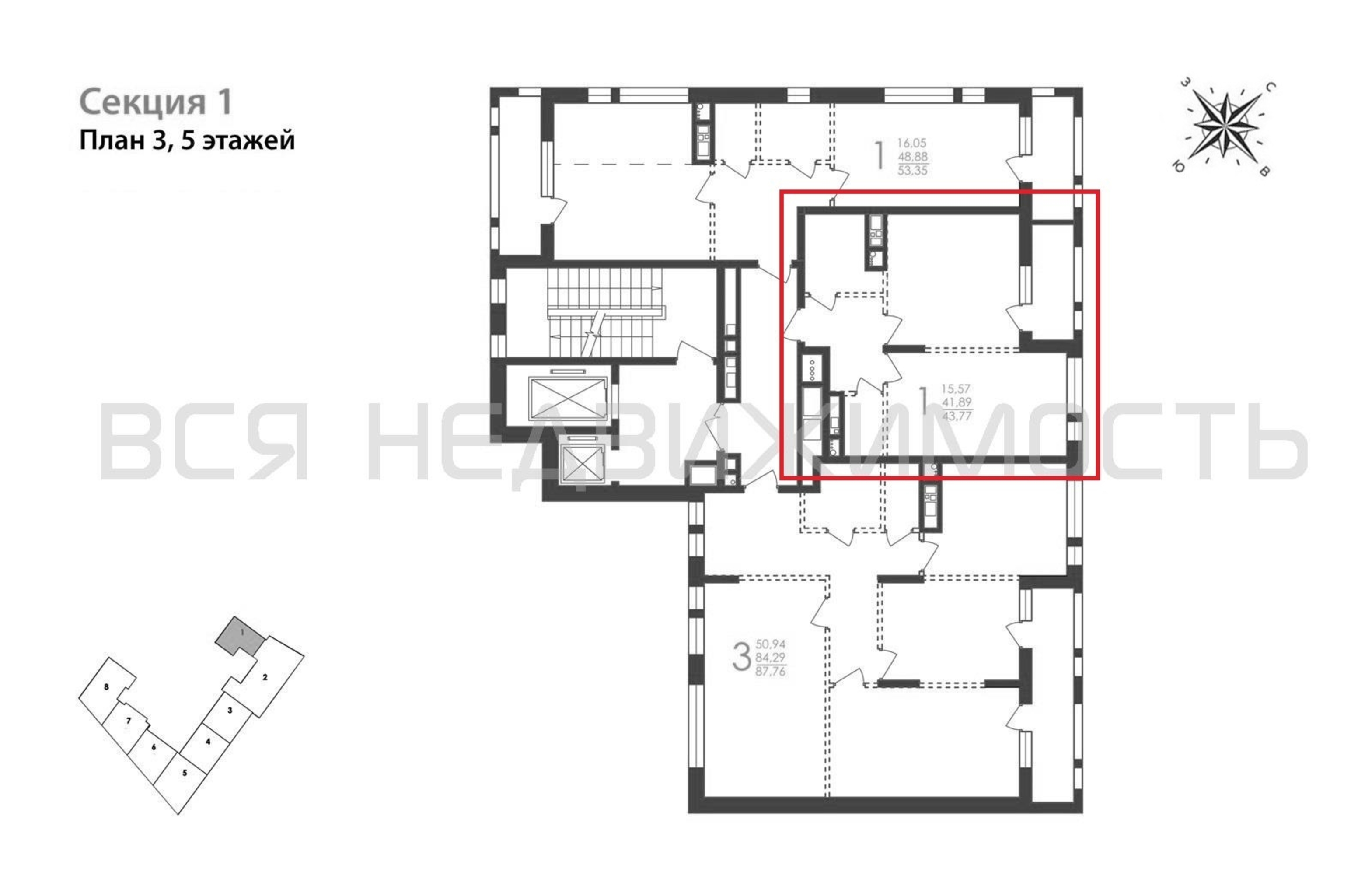 1-комнатная квартира, 43.77 м² 5/12 этаж ID объекта 100102260