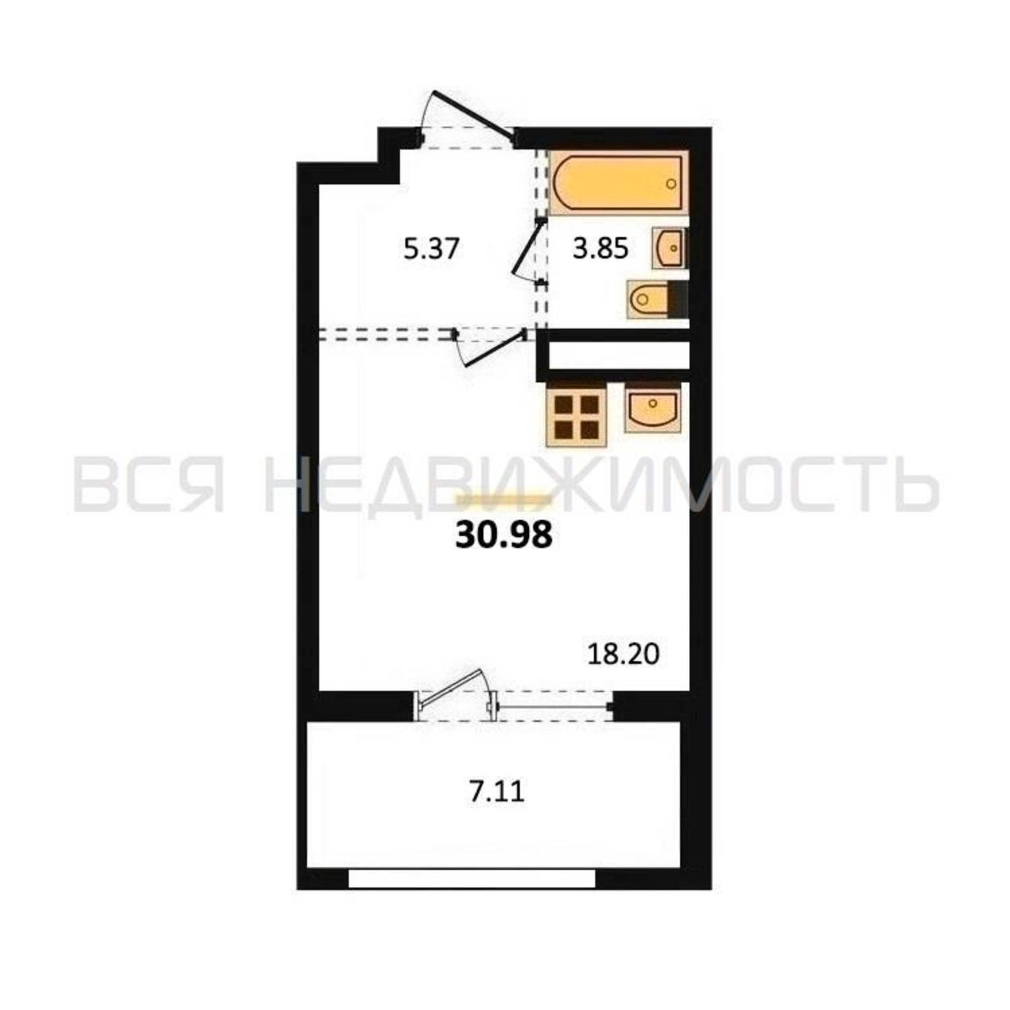 Квартиры-студии, 30.98 м² 4/7 этаж ID объекта 100102289
