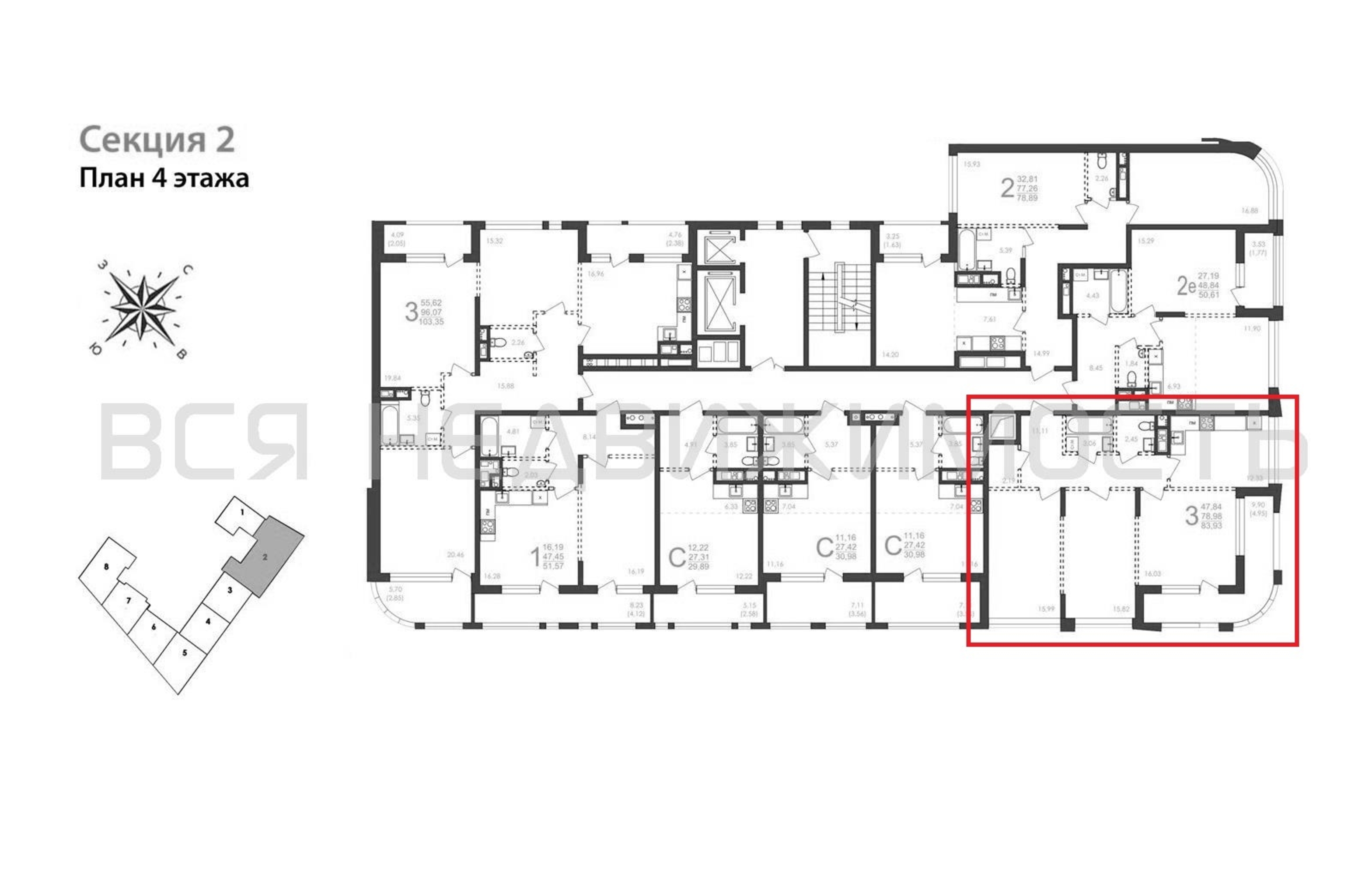3-комнатная квартира, 83.93 м² 4/7 этаж ID объекта 100102292