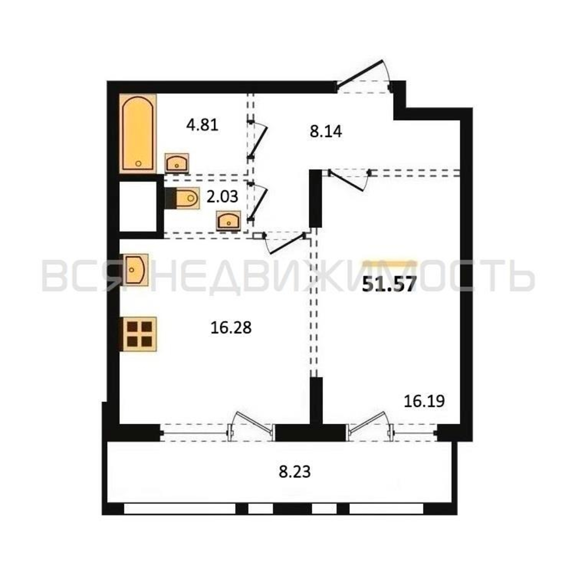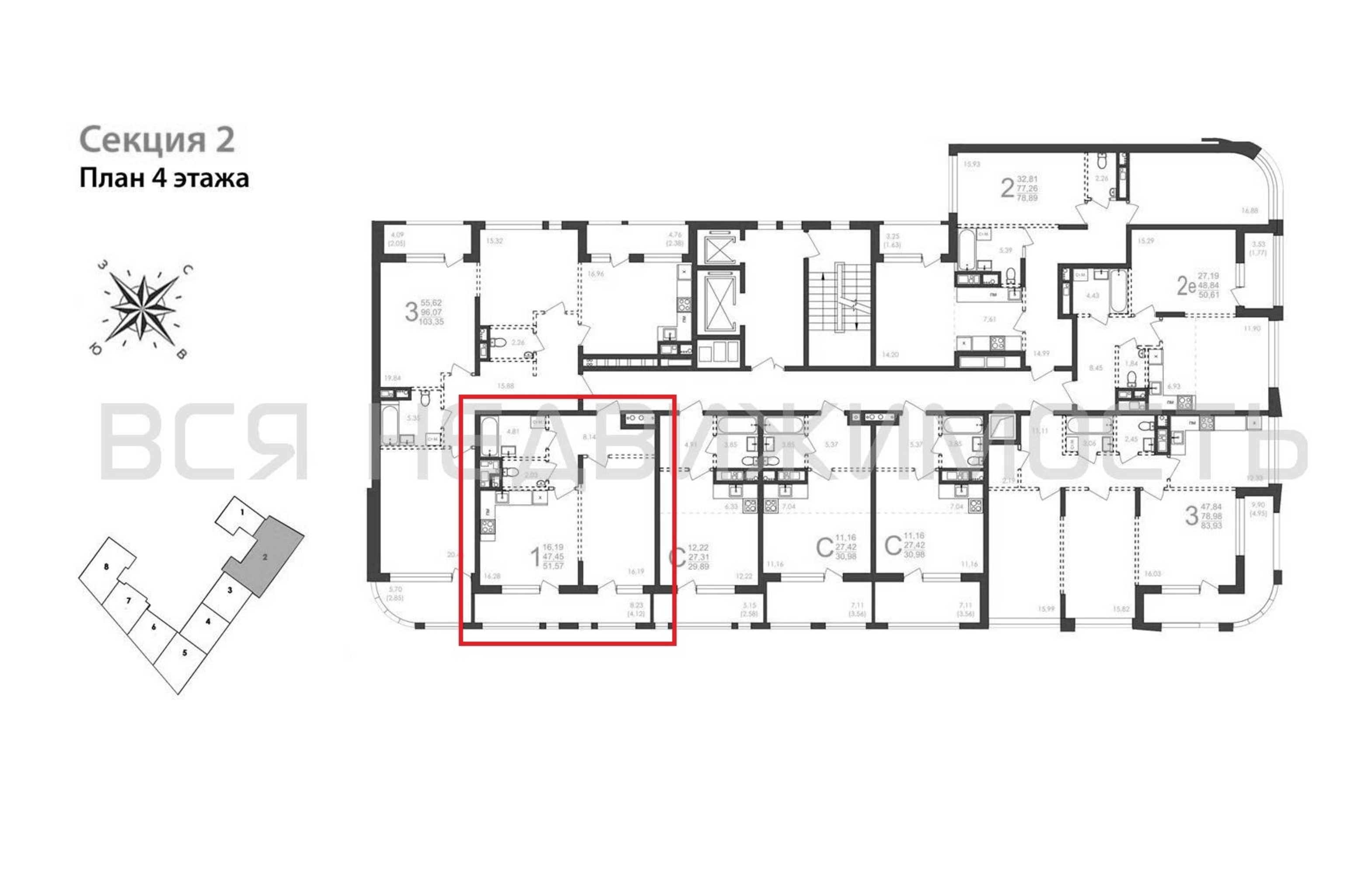1-комнатная квартира, 51.57 м² 4/7 этаж ID объекта 100102293