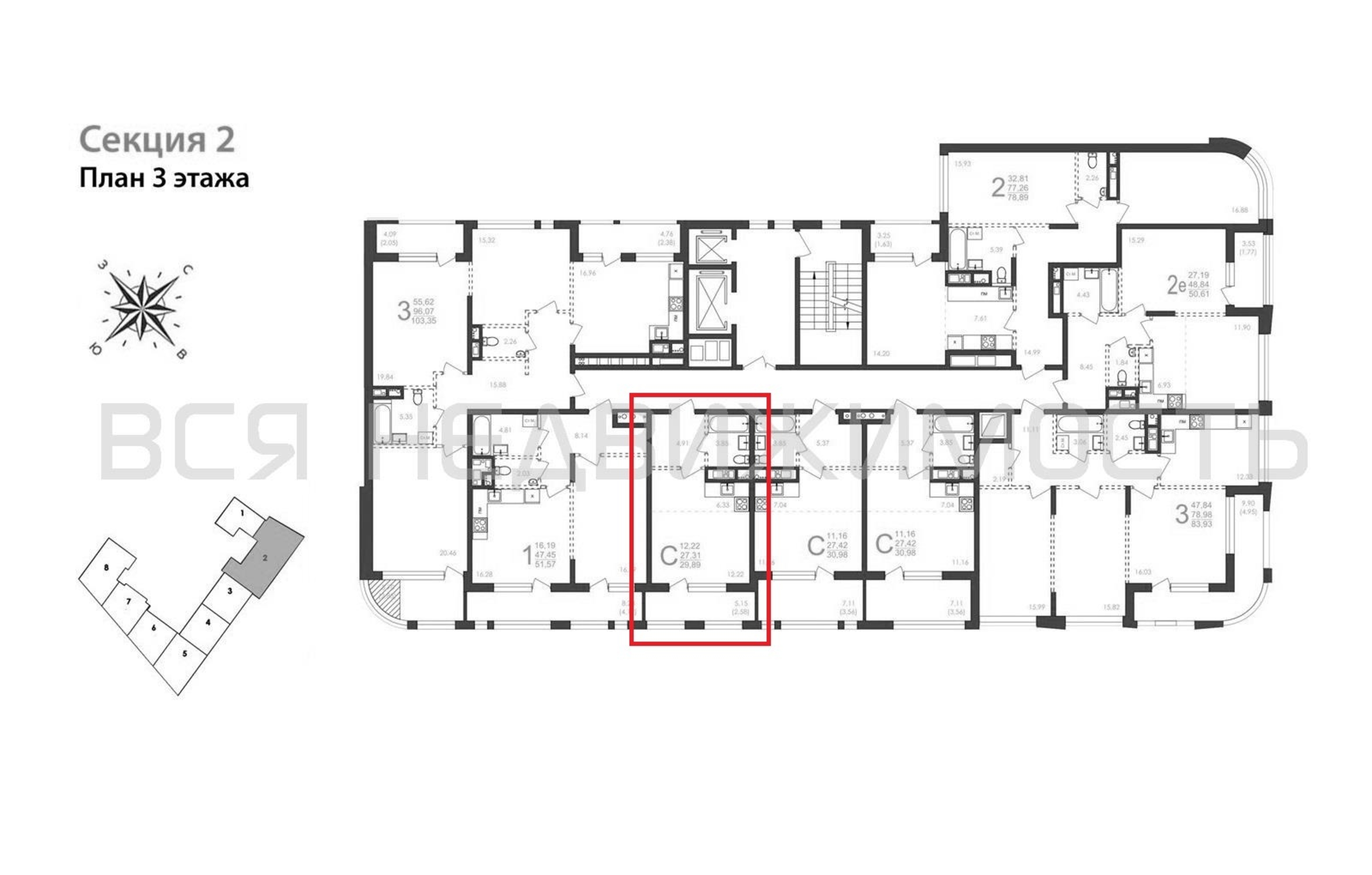 Квартиры-студии, 29.89 м² 3/7 этаж ID объекта 100102300