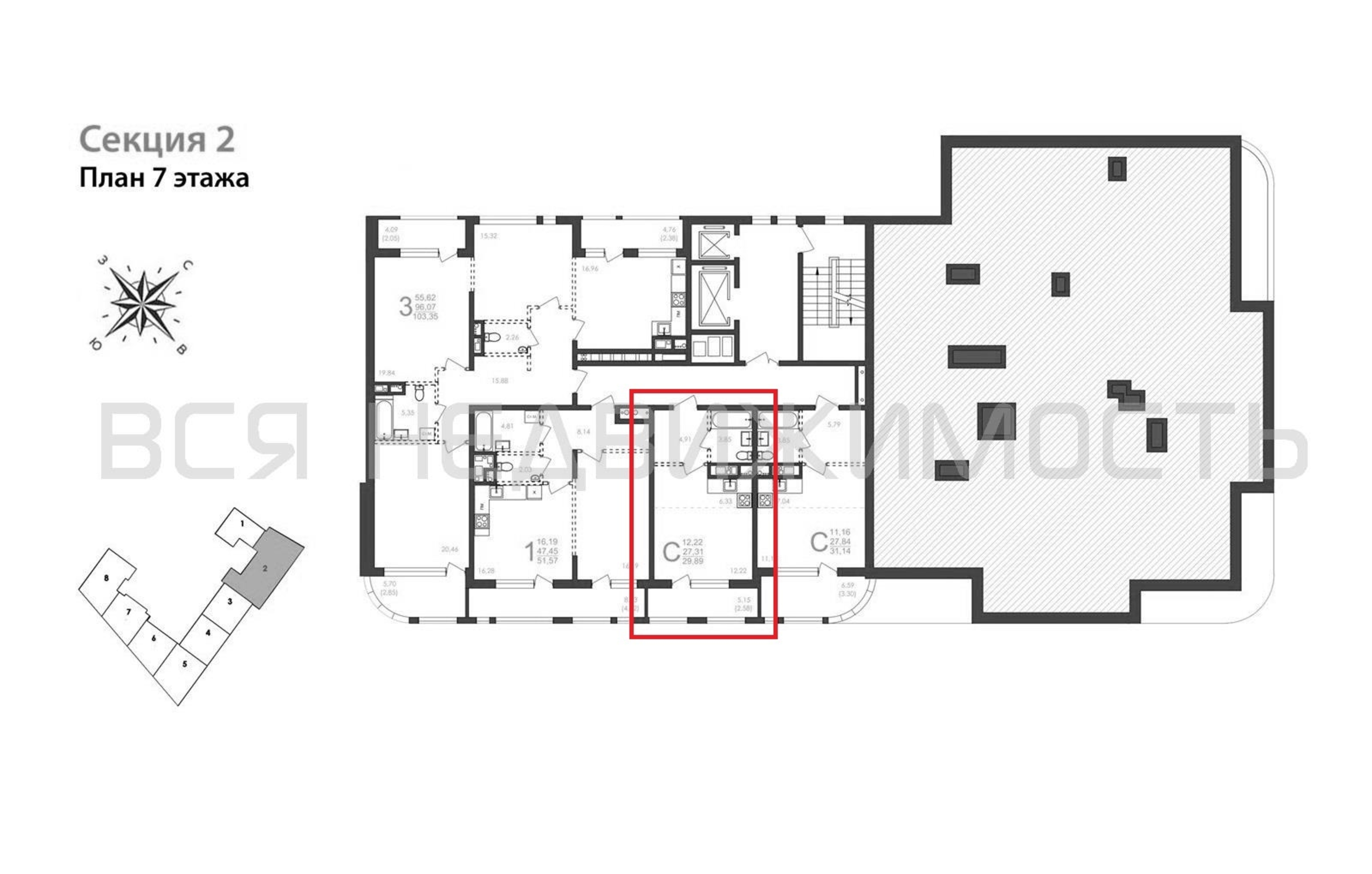 Квартиры-студии, 29.89 м² 7/7 этаж ID объекта 100102305