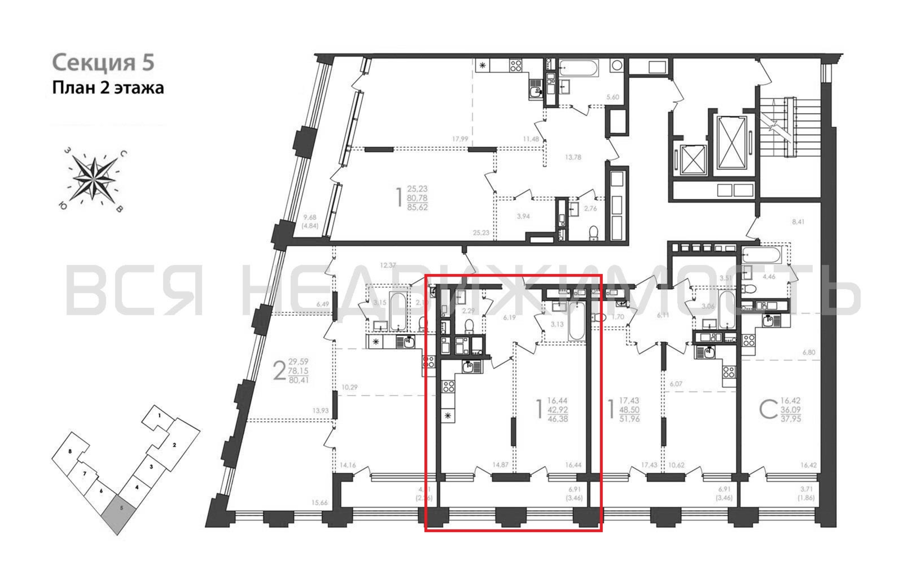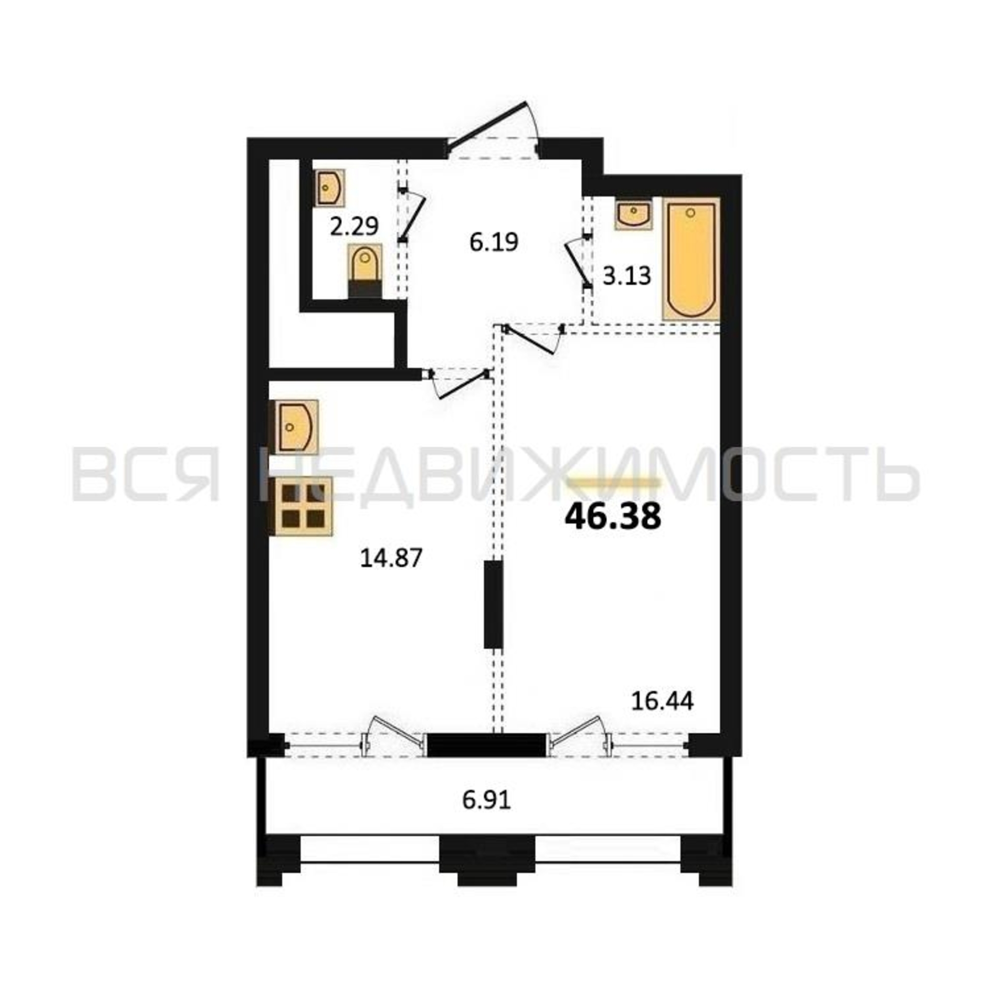 1-комнатная квартира, 46.38 м² 2/8 этаж ID объекта 100102323