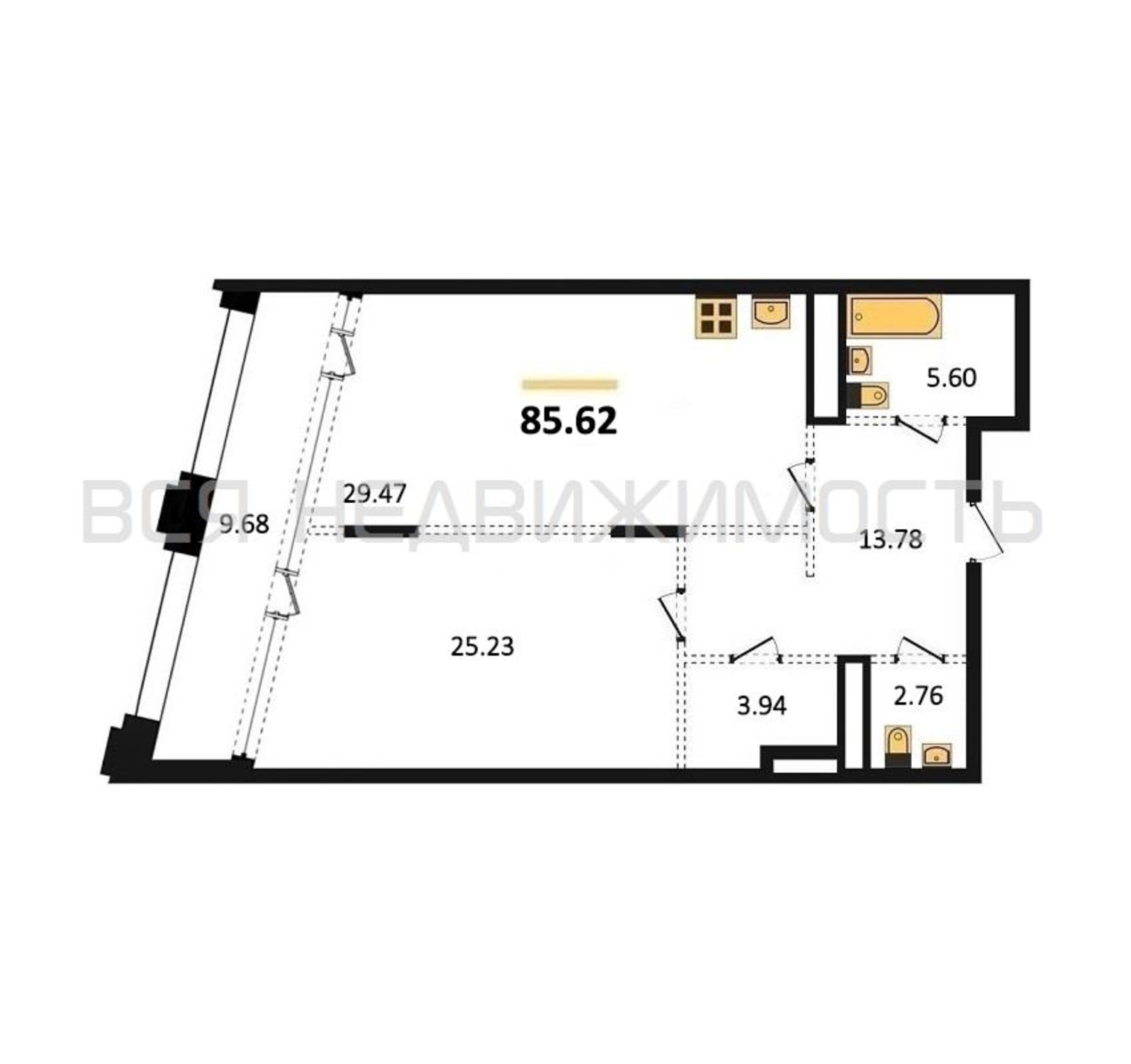 1-комнатная квартира, 85.62 м² 2/8 этаж ID объекта 100102325
