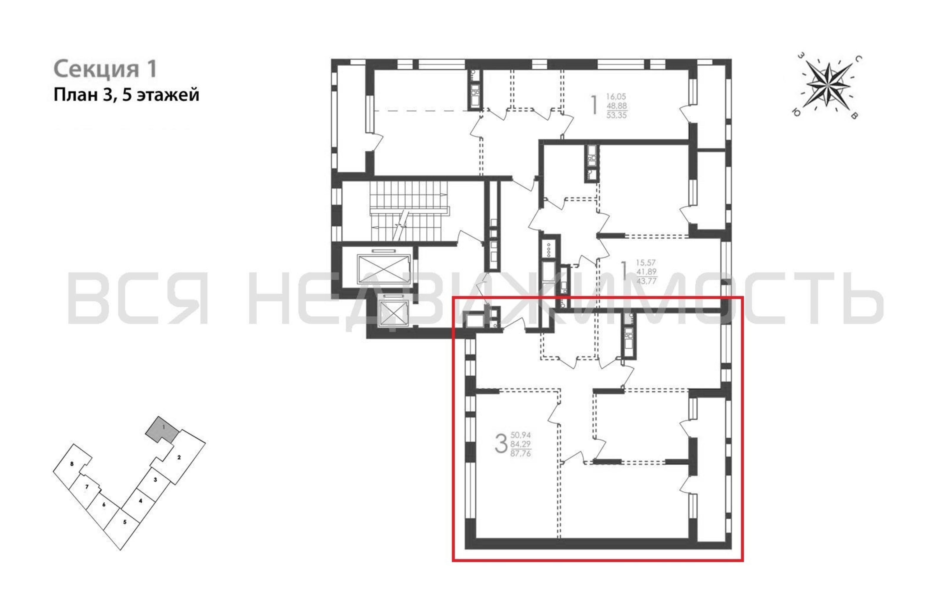 3-комнатная квартира, 87.76 м² 5/12 этаж ID объекта 100102333