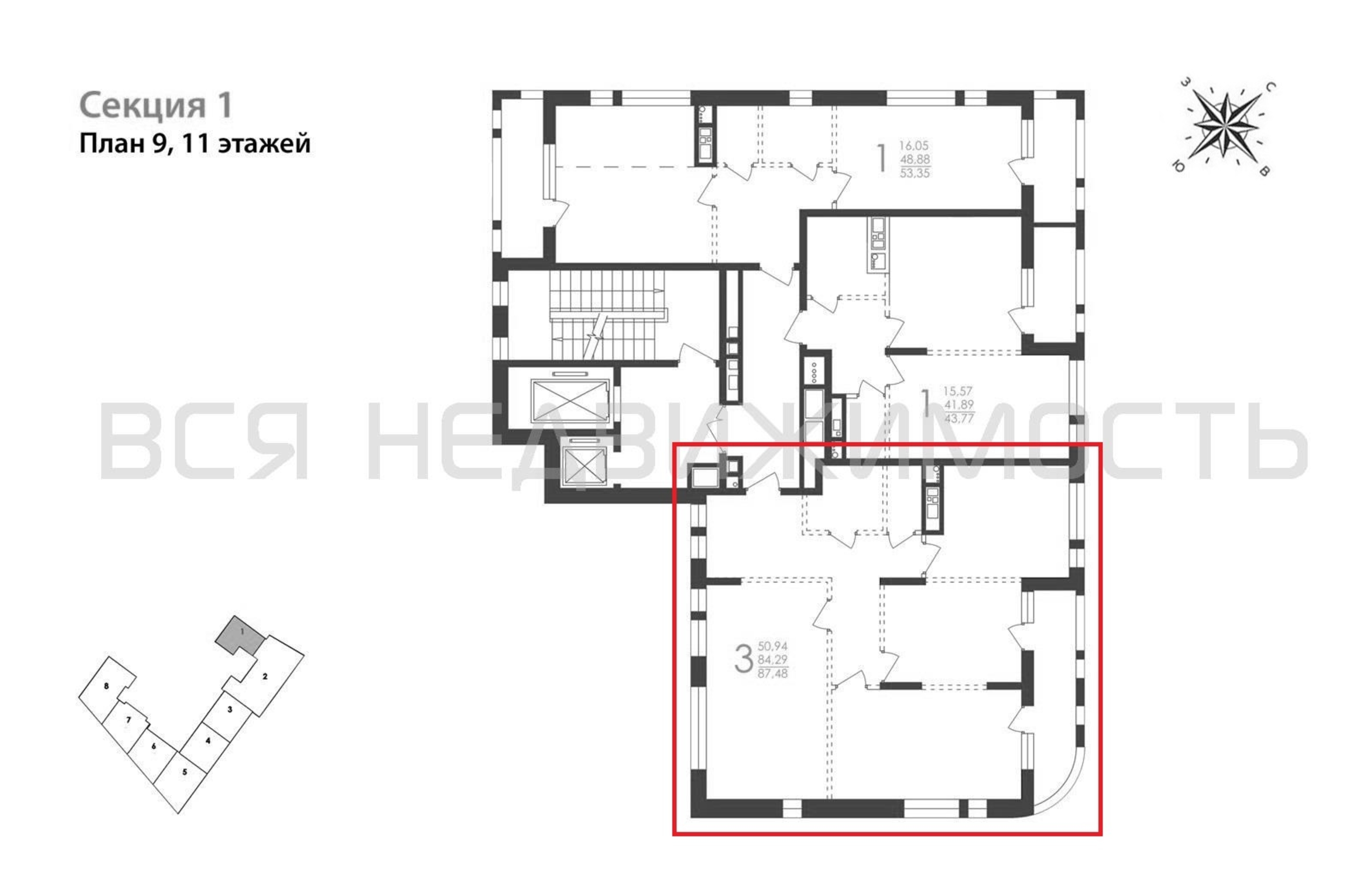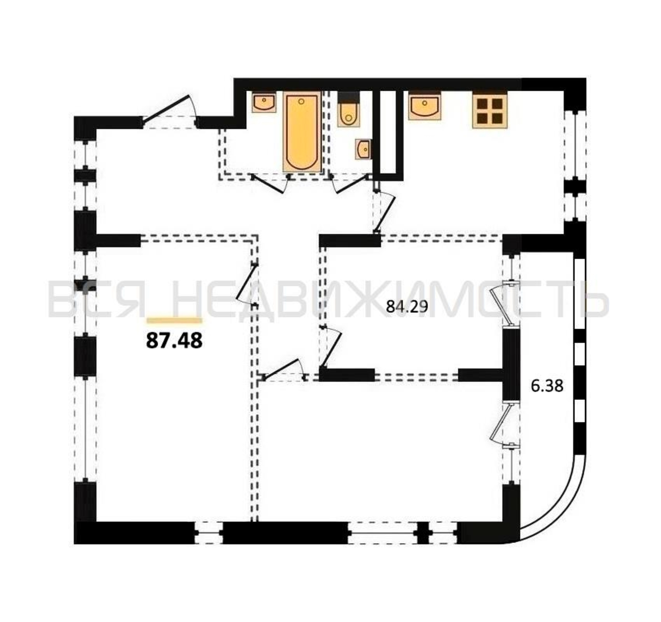 3-комнатная квартира, 87.48 м² 9/12 этаж ID объекта 100102337