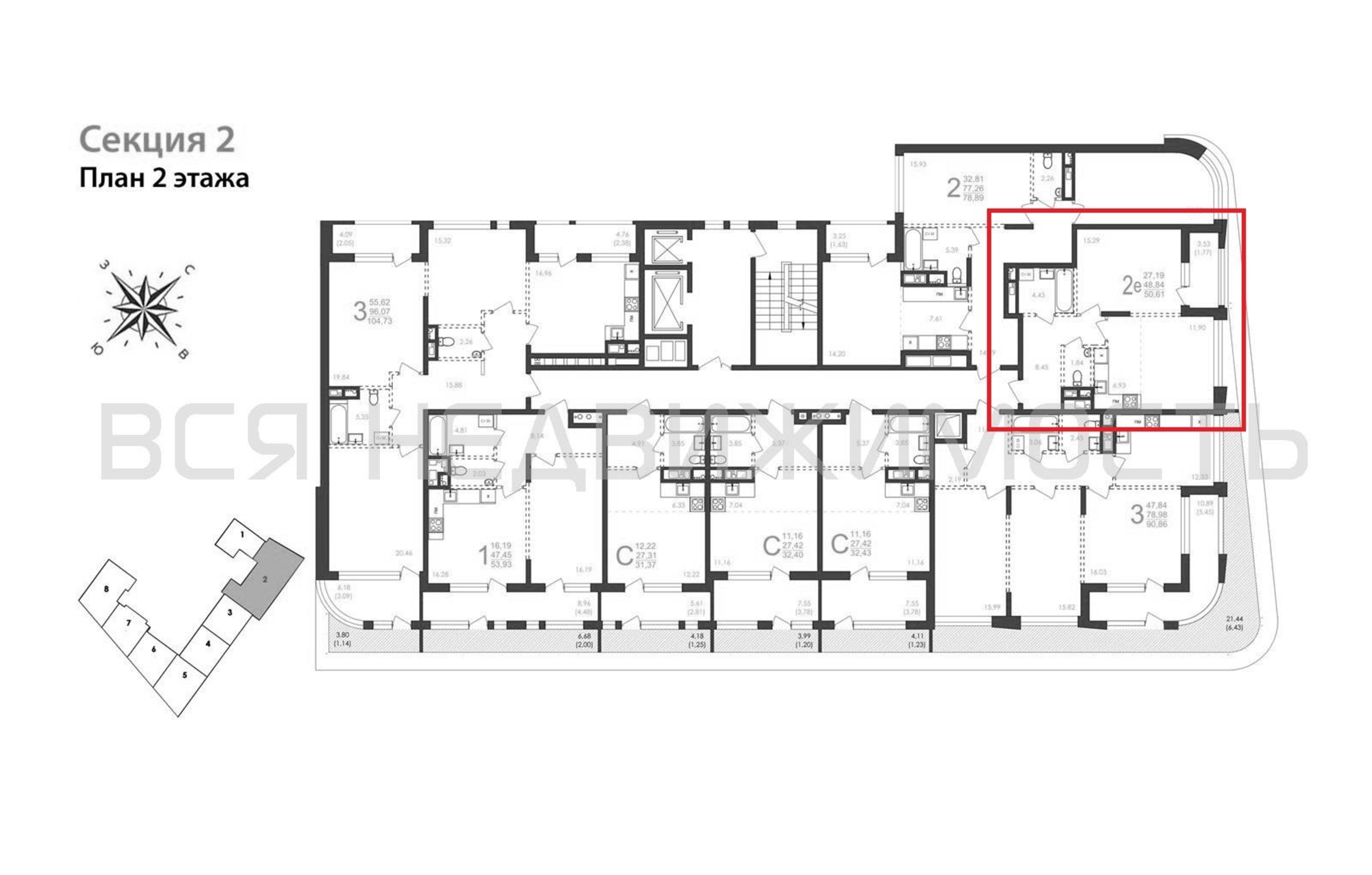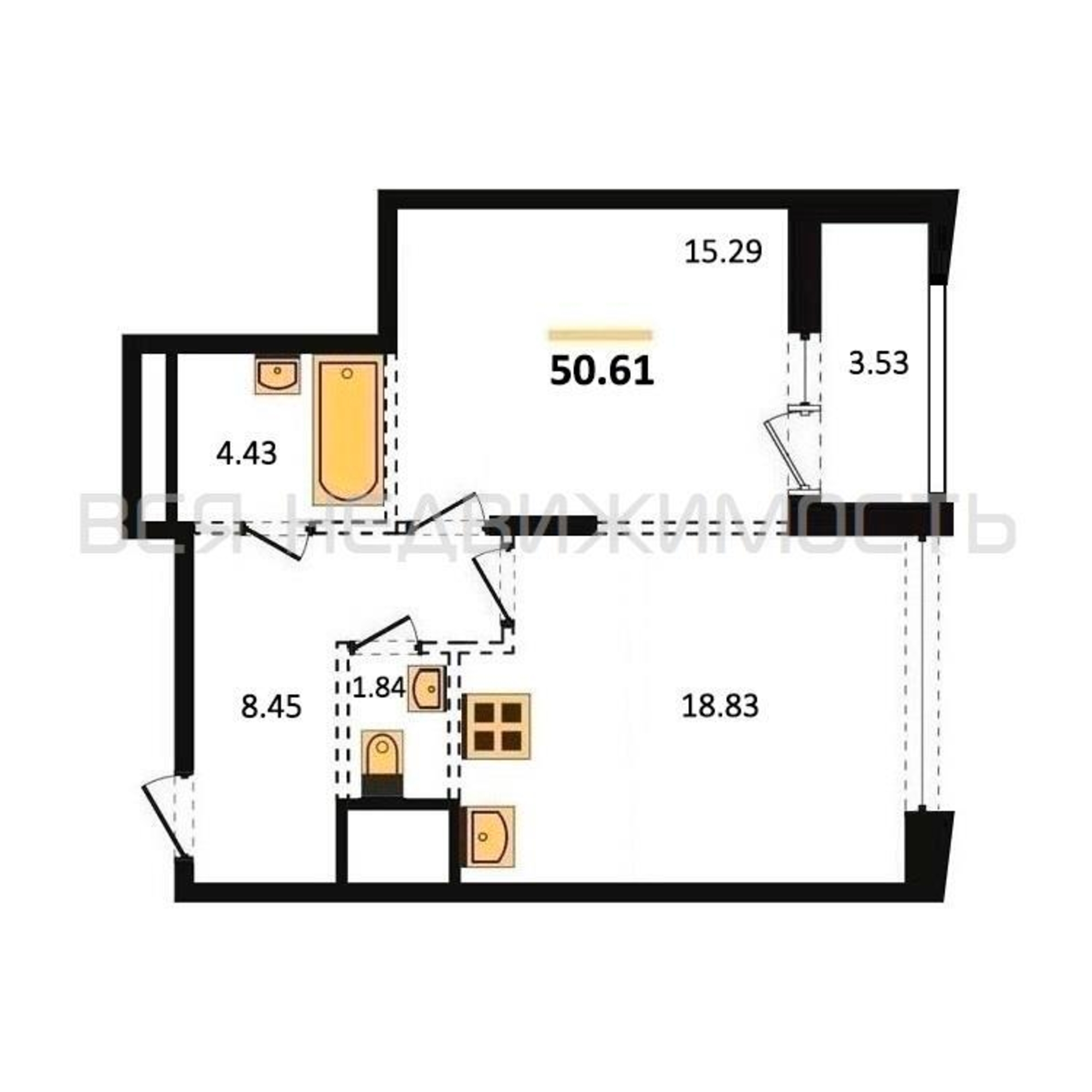 1-комнатная квартира, 50.61 м² 2/7 этаж ID объекта 100102446