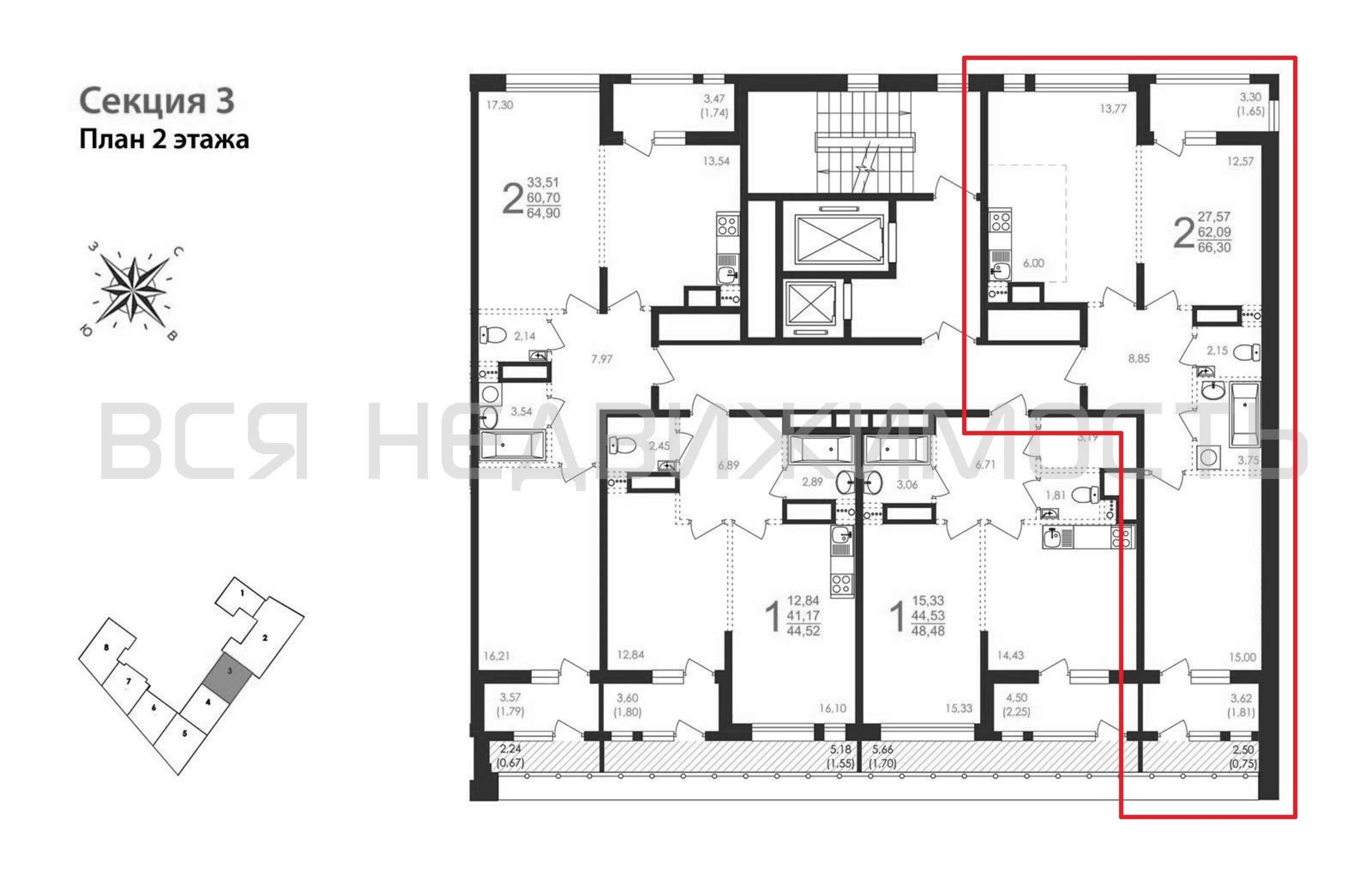 2-комнатная квартира, 66.30 м² 2/8 этаж ID объекта 100102449