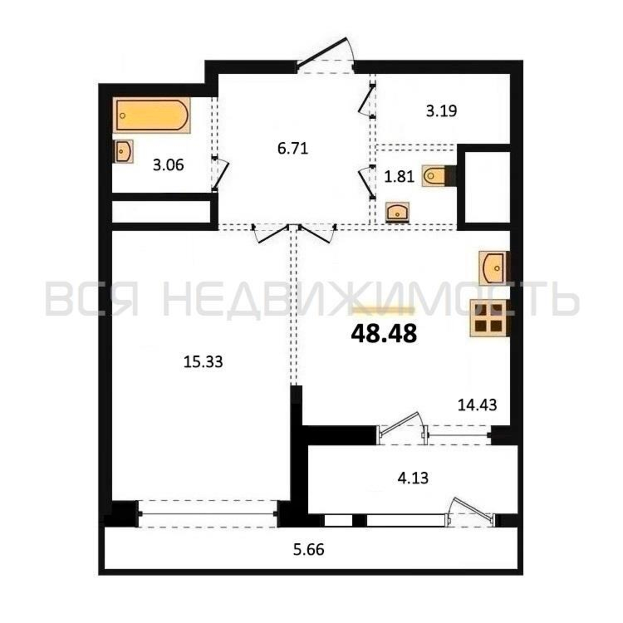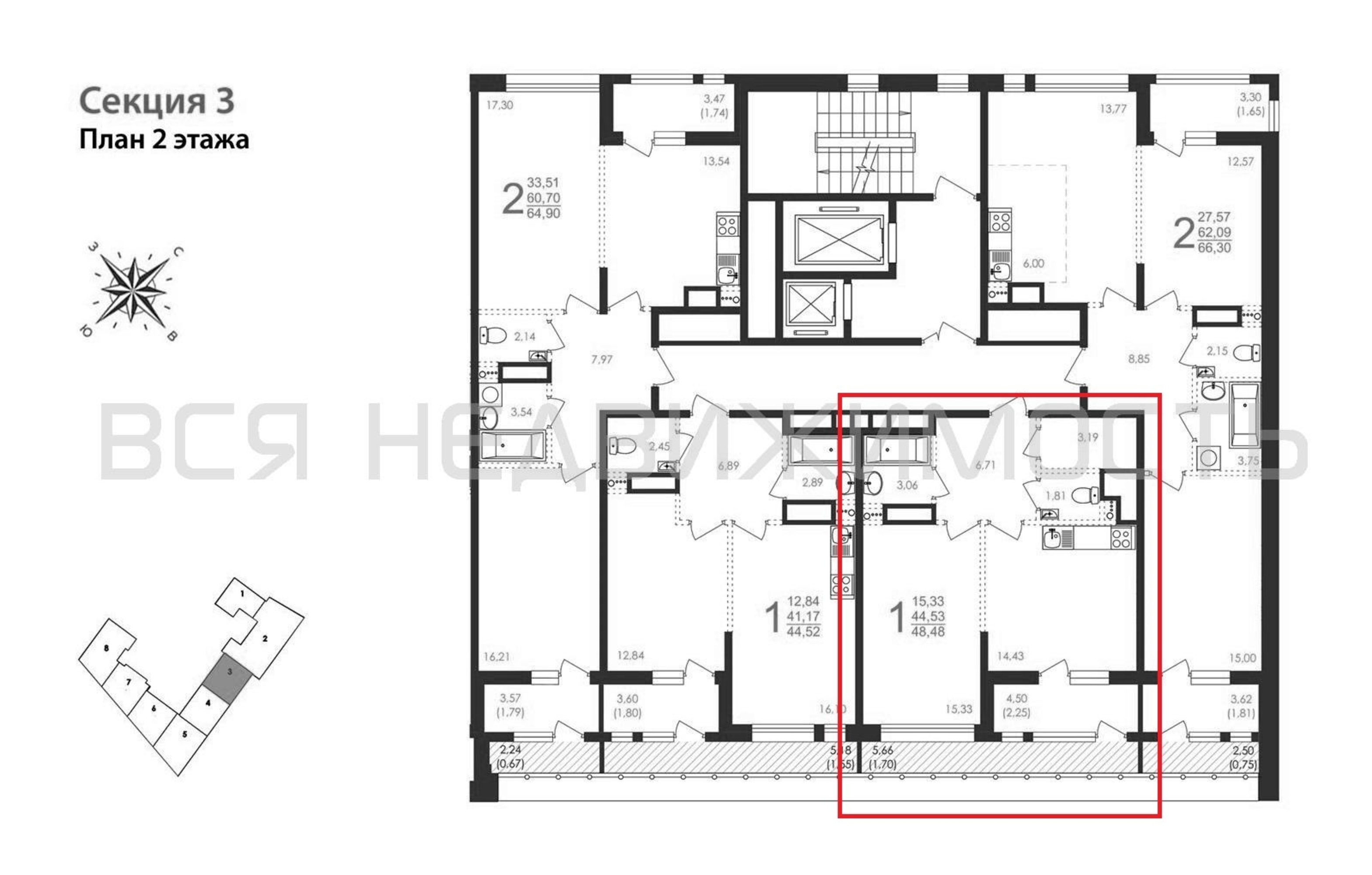 1-комнатная квартира, 48.48 м² 2/8 этаж ID объекта 100102450
