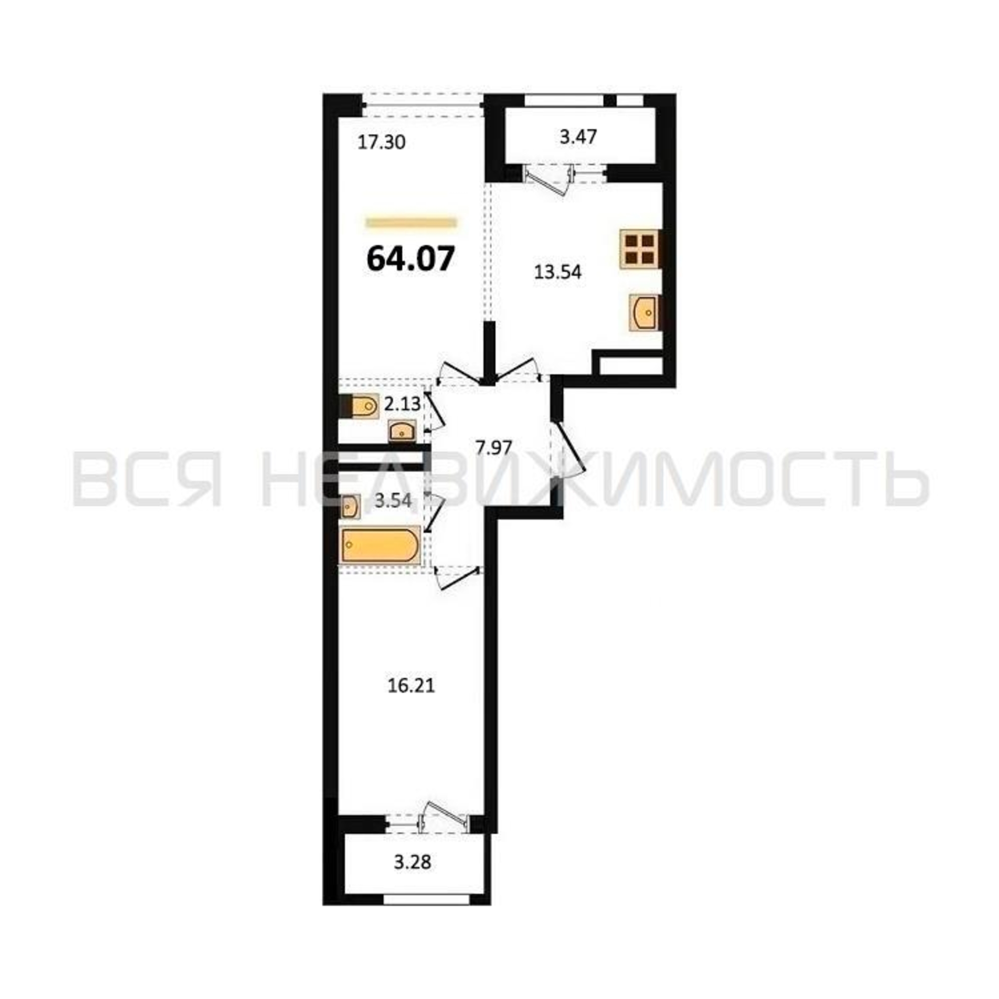 Строительная площадь64.07 м²