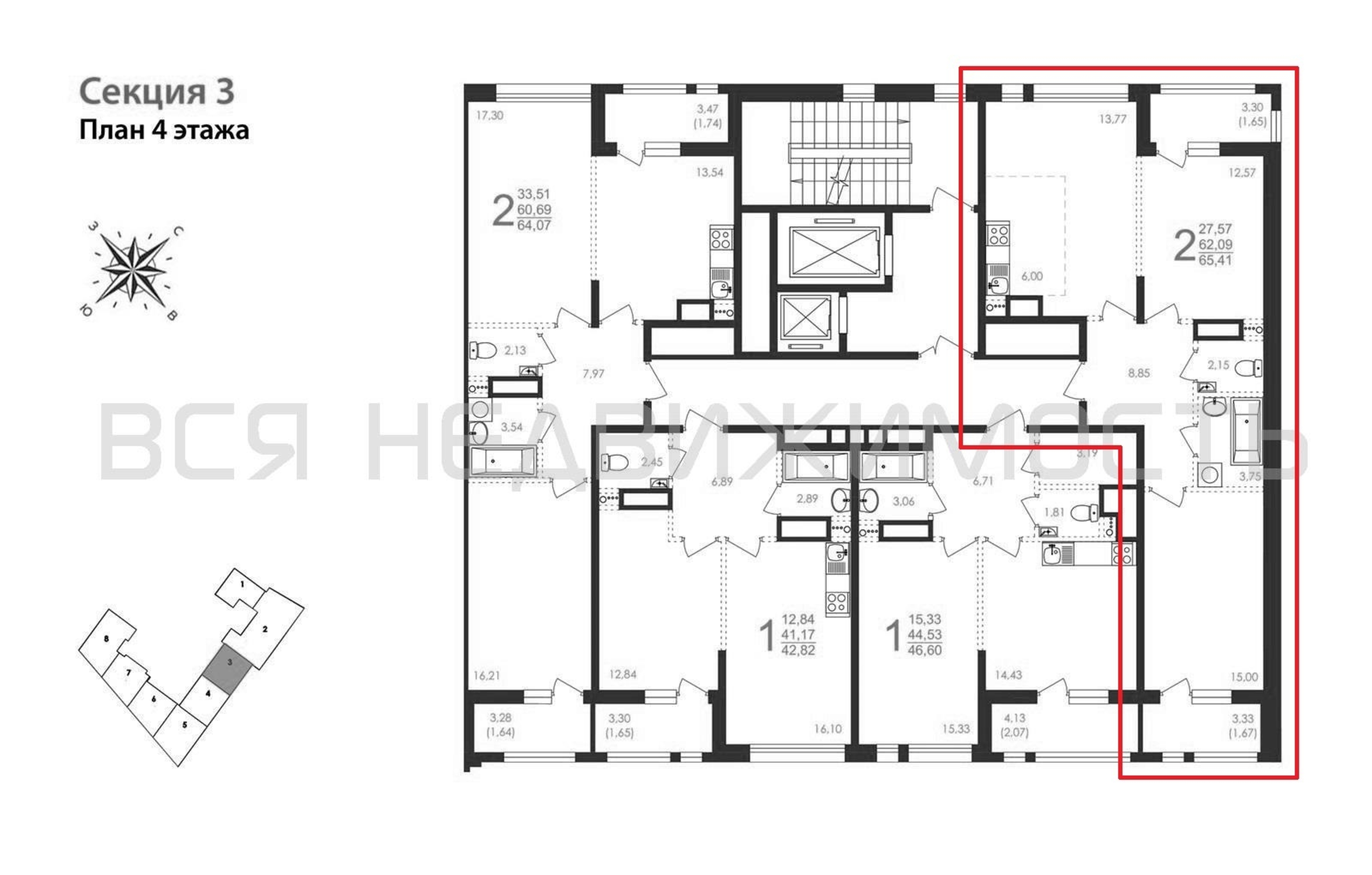2-комнатная квартира, 65.41 м² 4/8 этаж ID объекта 100102457