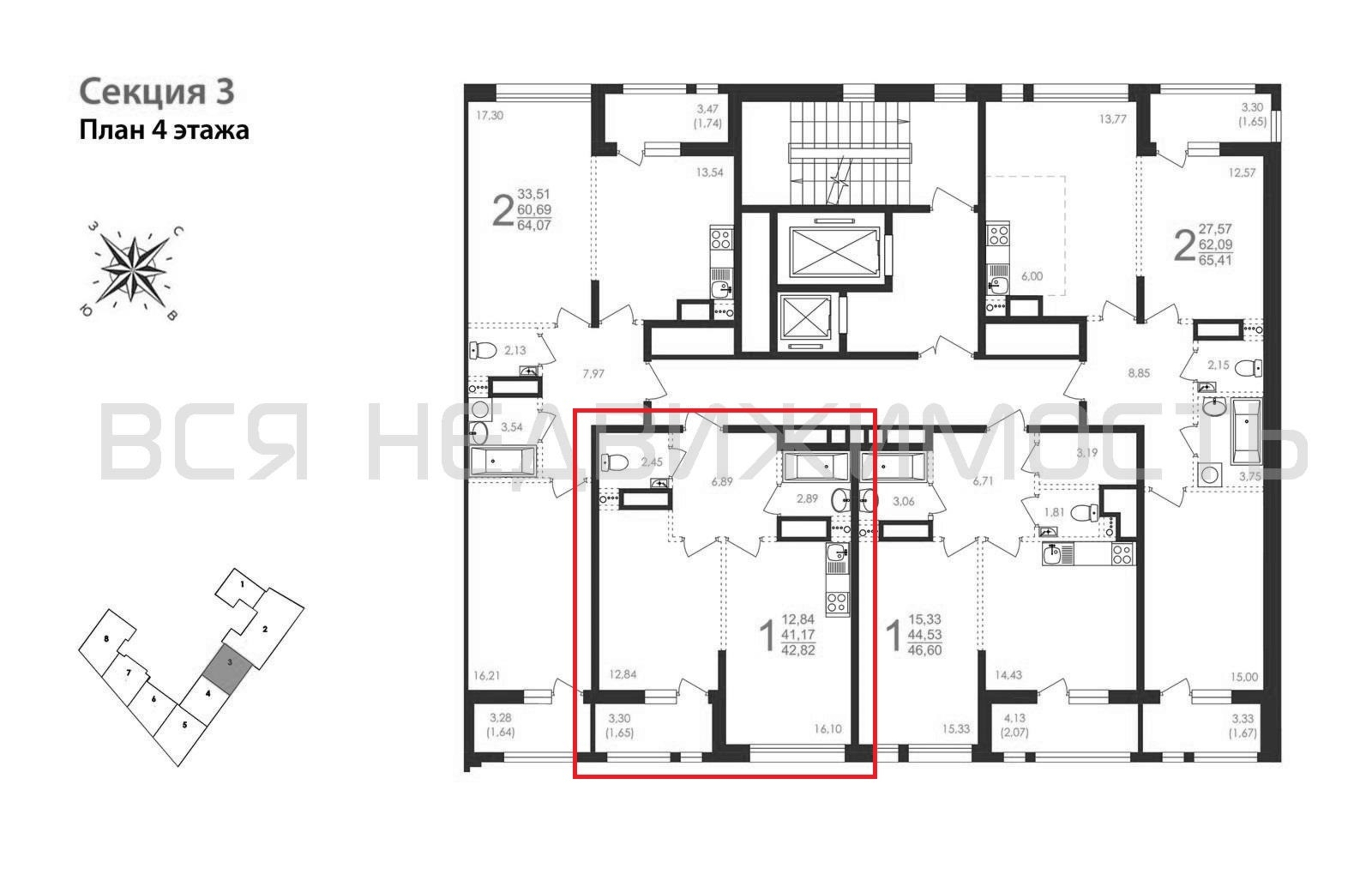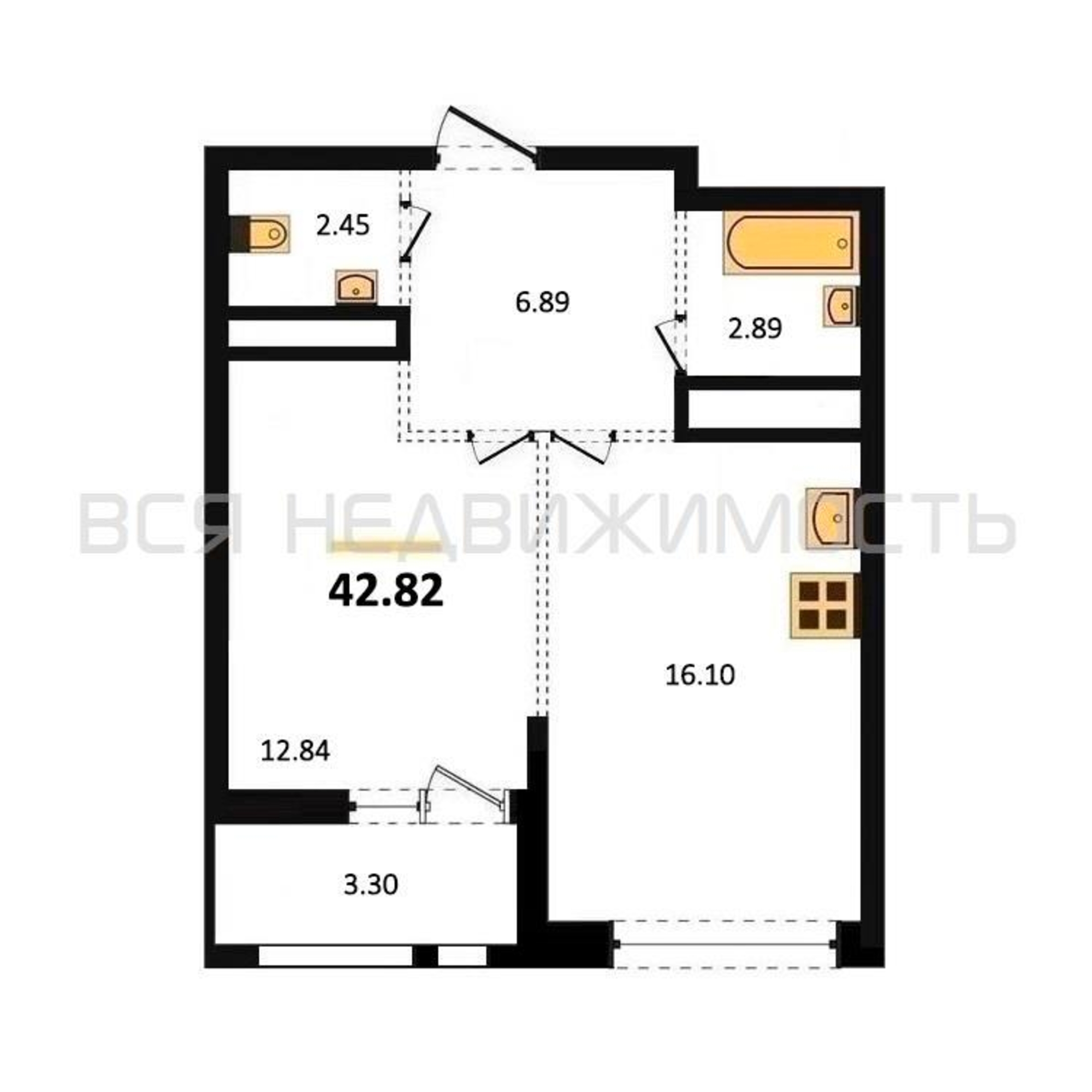 1-комнатная квартира, 42.82 м² 4/8 этаж ID объекта 100102459