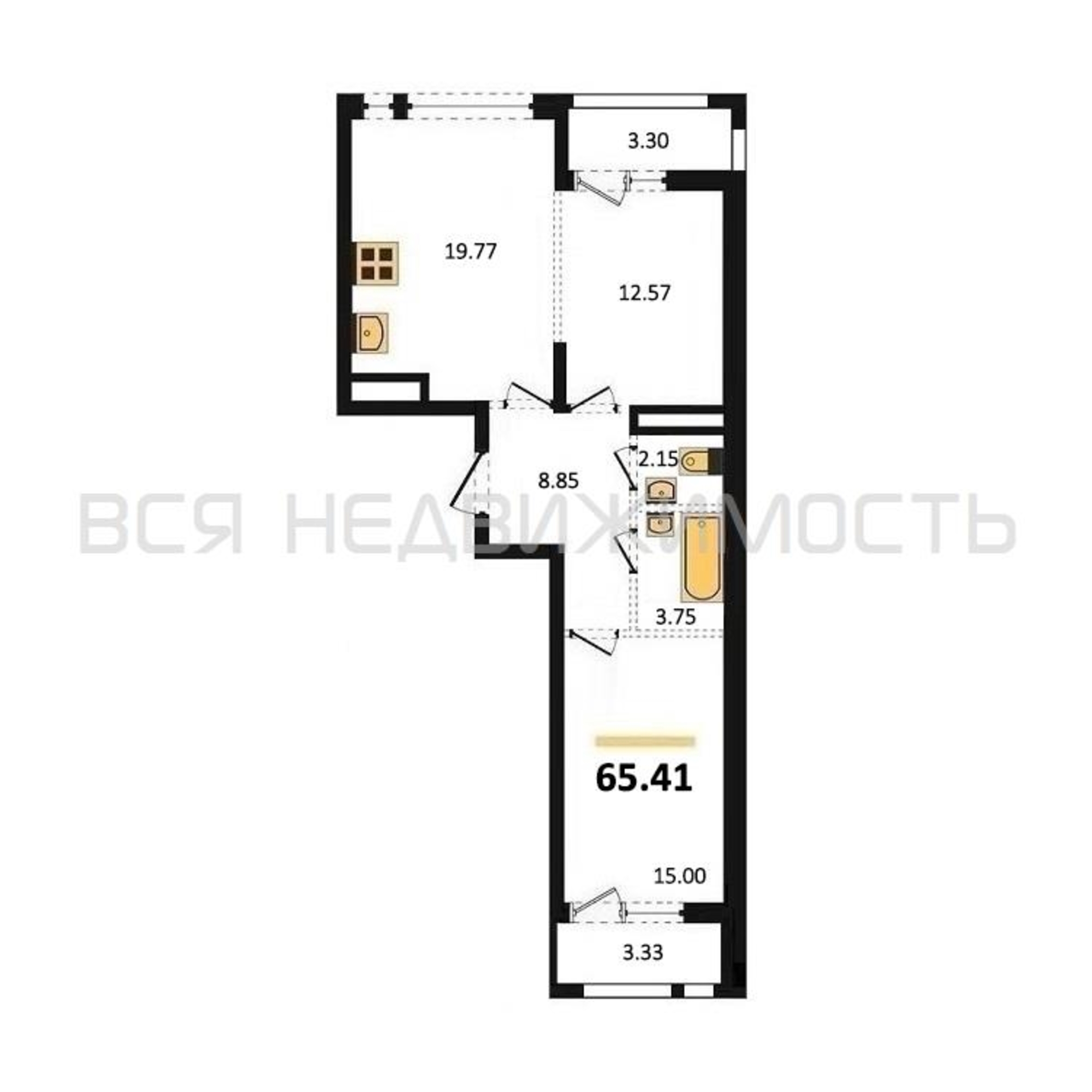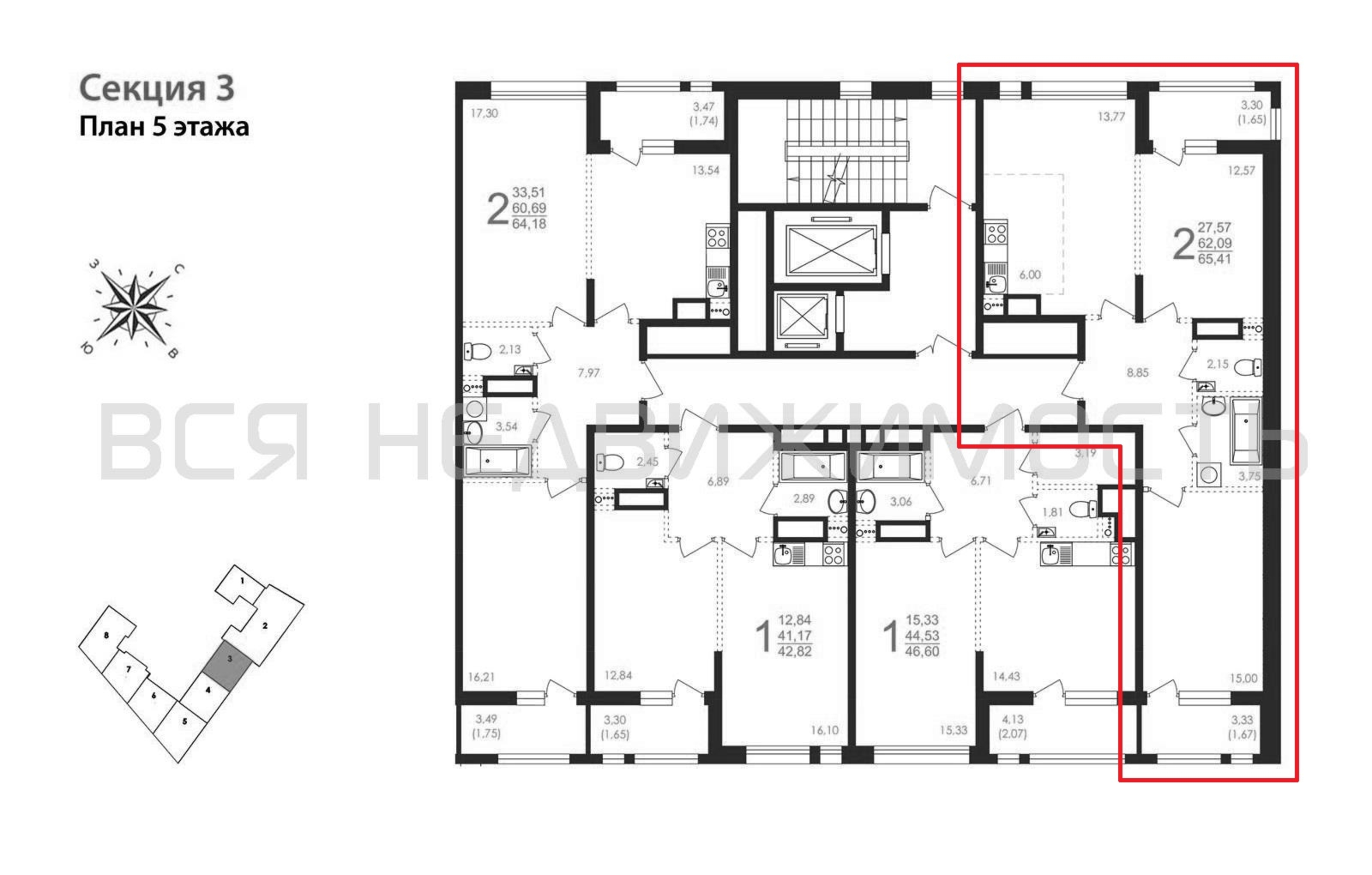 2-комнатная квартира, 65.41 м² 5/8 этаж ID объекта 100102461