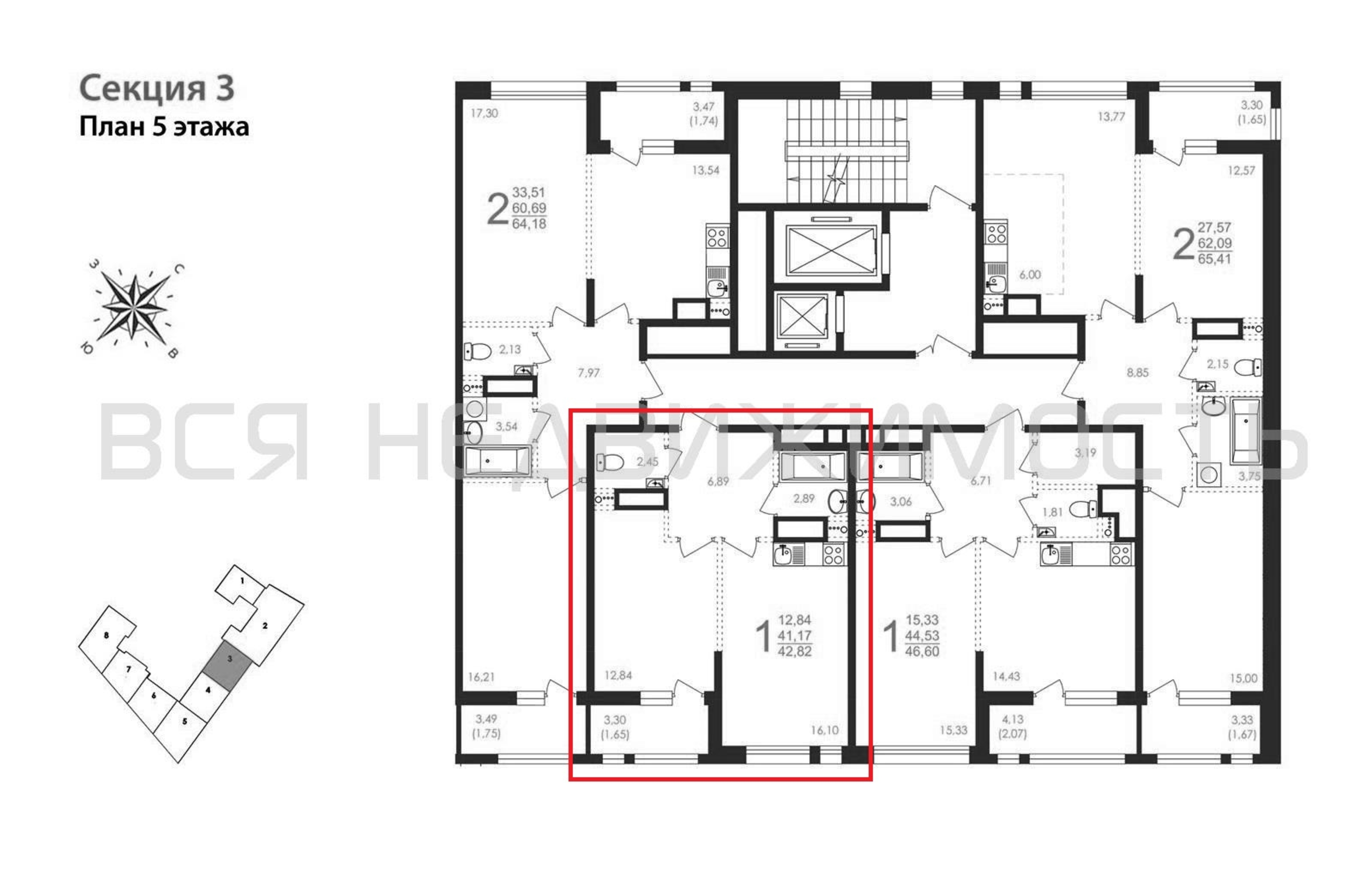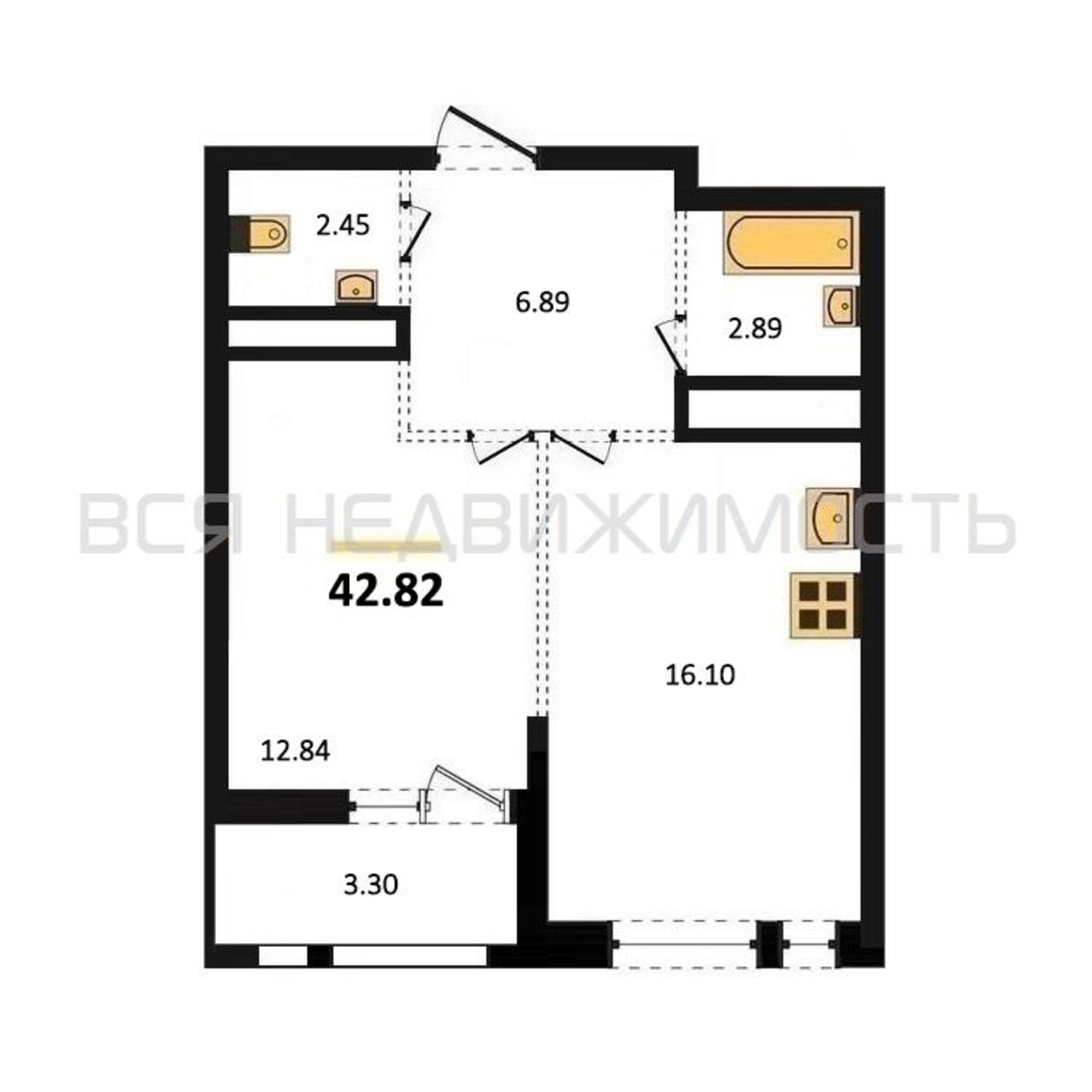 1-комнатная квартира, 42.82 м² 5/8 этаж ID объекта 100102463