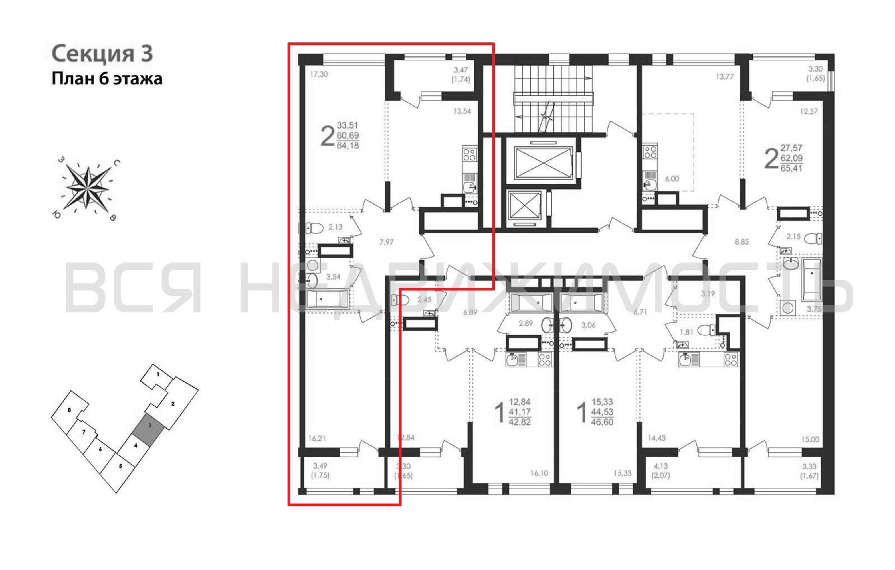2-комнатная квартира, 64.18 м² 6/8 этаж ID объекта 100102468