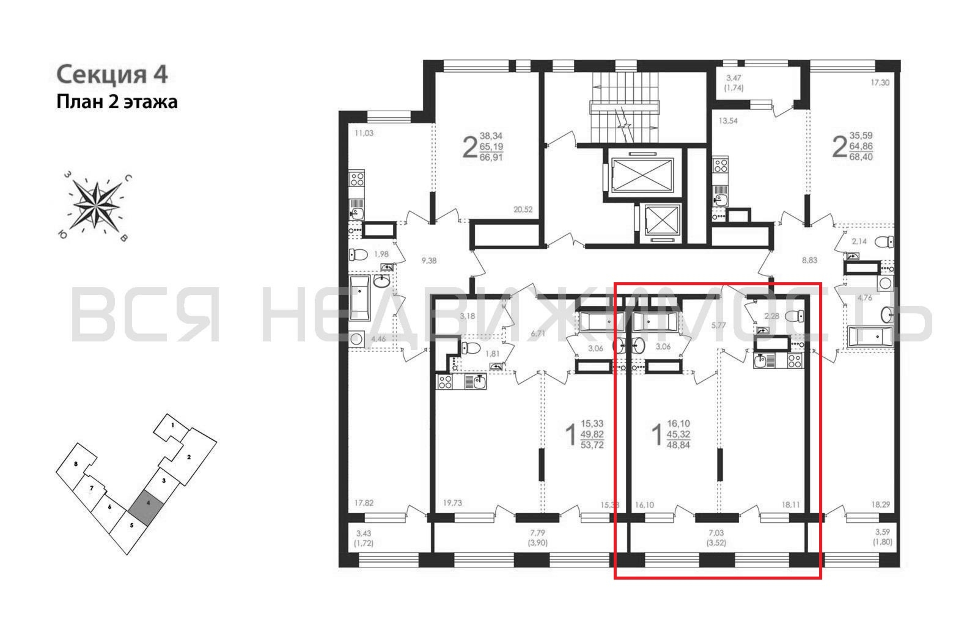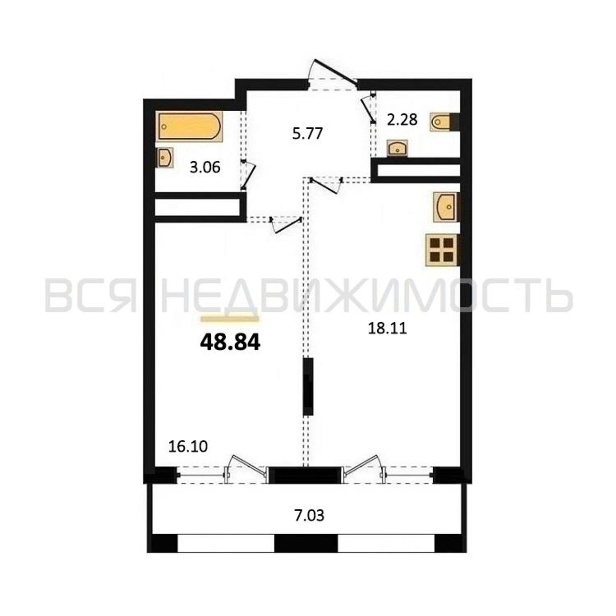 1-комнатная квартира, 48.84 м² 2/8 этаж ID объекта 100102478