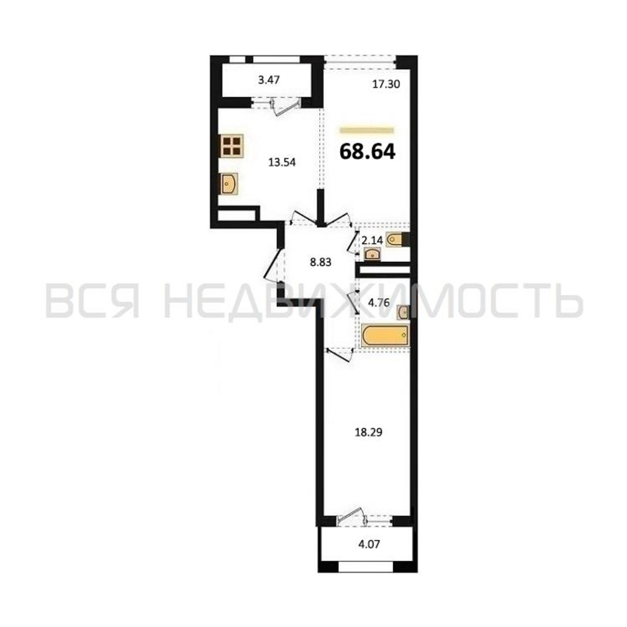 Строительная площадь68.64 м²
