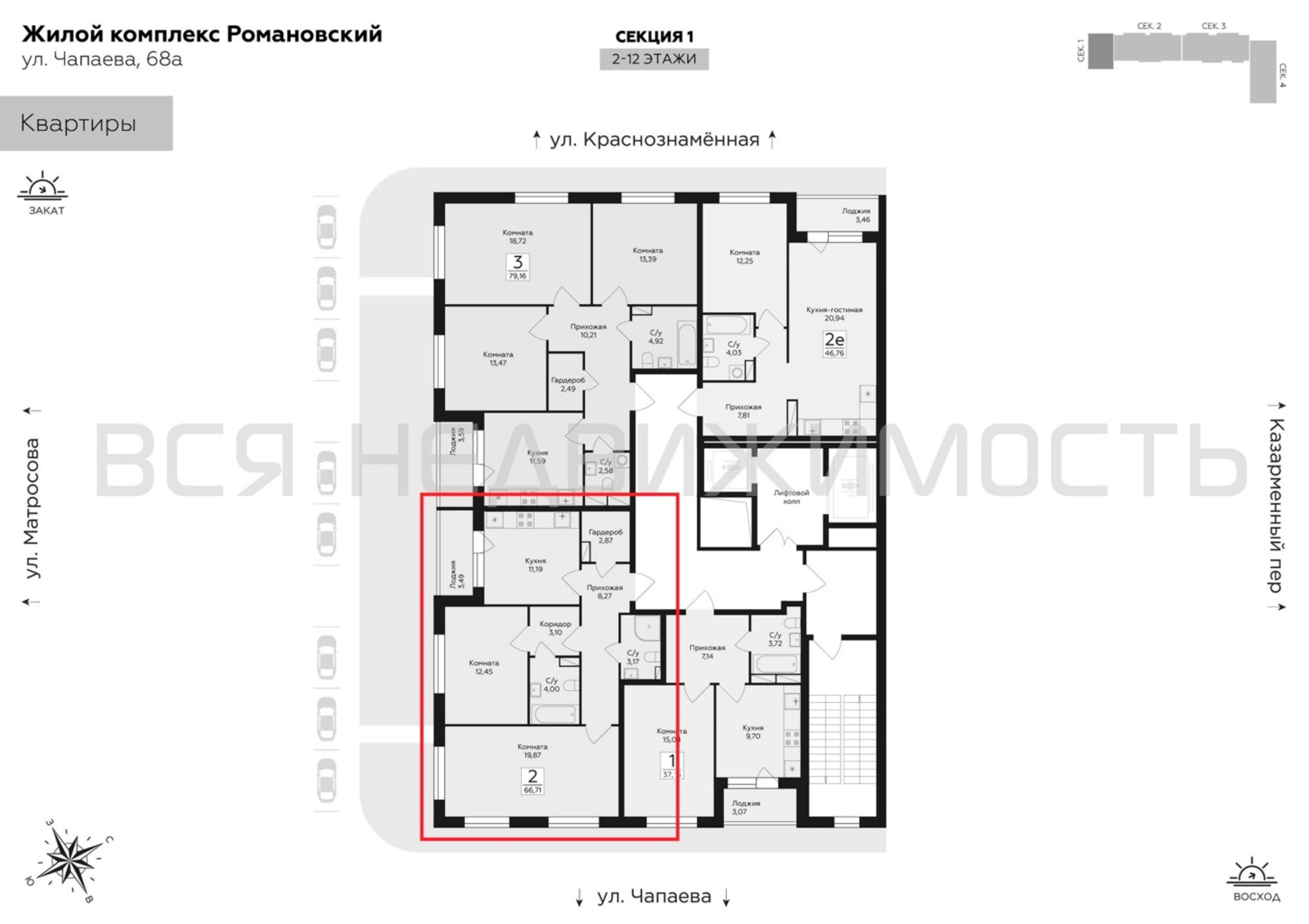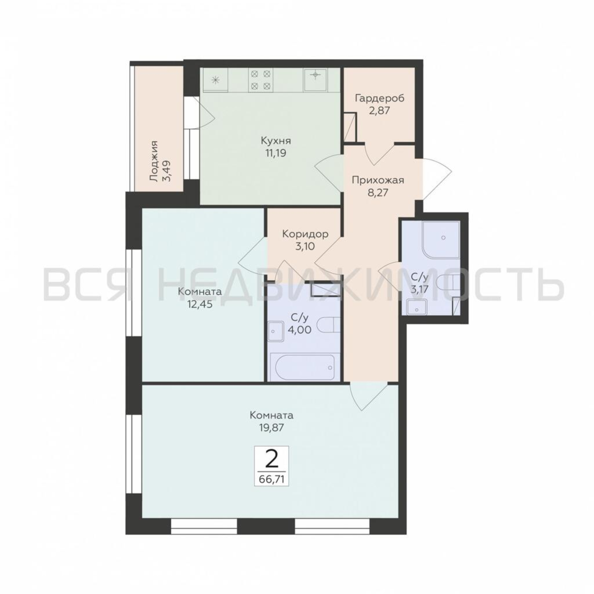 2-комнатная квартира, 66.71 м² 11/12 этаж ID объекта 100103217