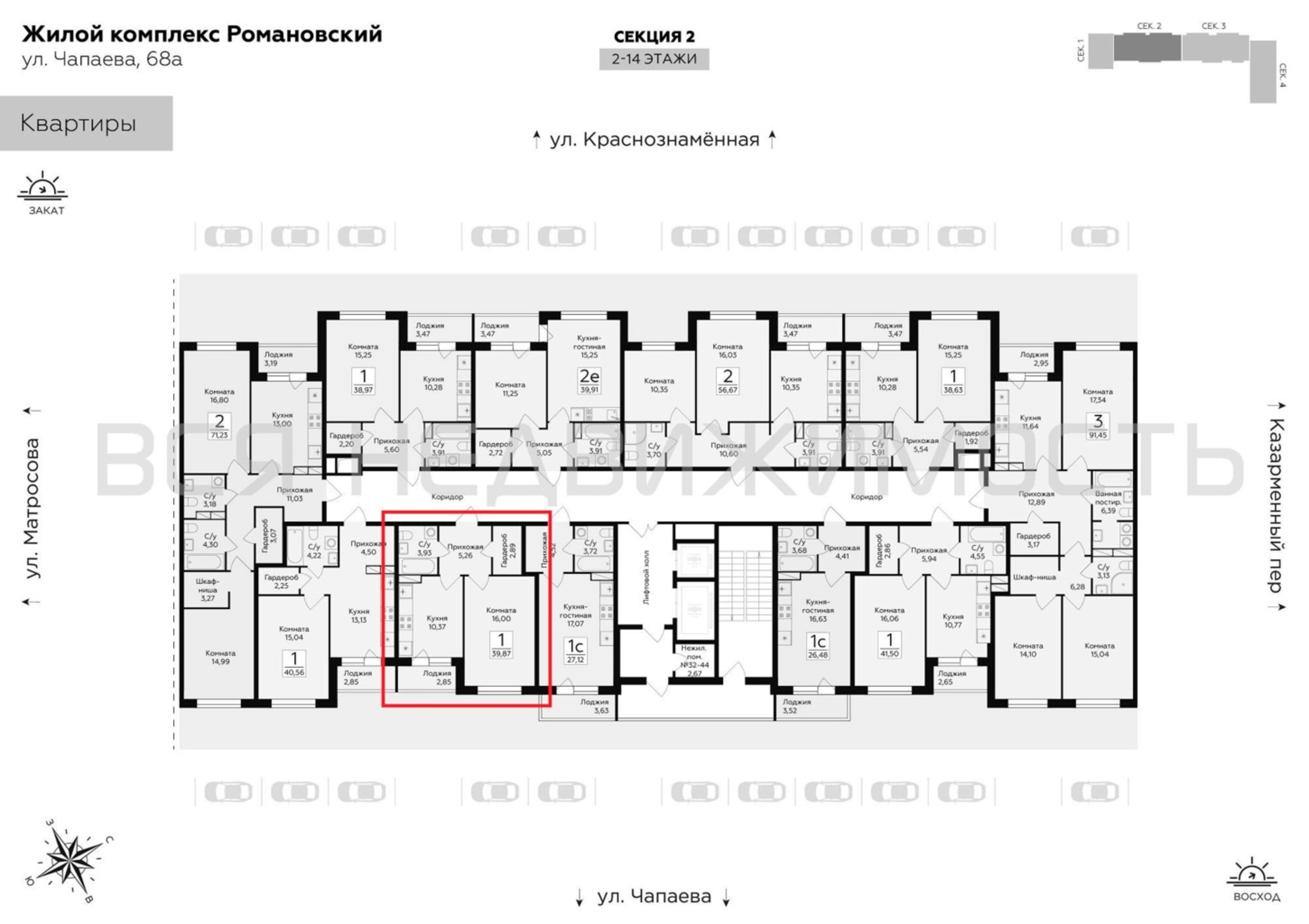 1-комнатная квартира, 39.87 м² 2/14 этаж ID объекта 100103225